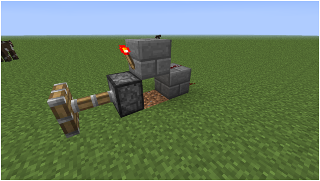 I was activating a piston by charging a stone brick block with a redstone torch on the side of this block. The piston was directly below the redstone torch. When toggling the state of stone brick block's charge, the piston remained in the extended position, though I expected the state of the piston to toggle with the state of the redstone dust/torch. See attached pictures.