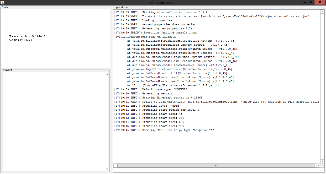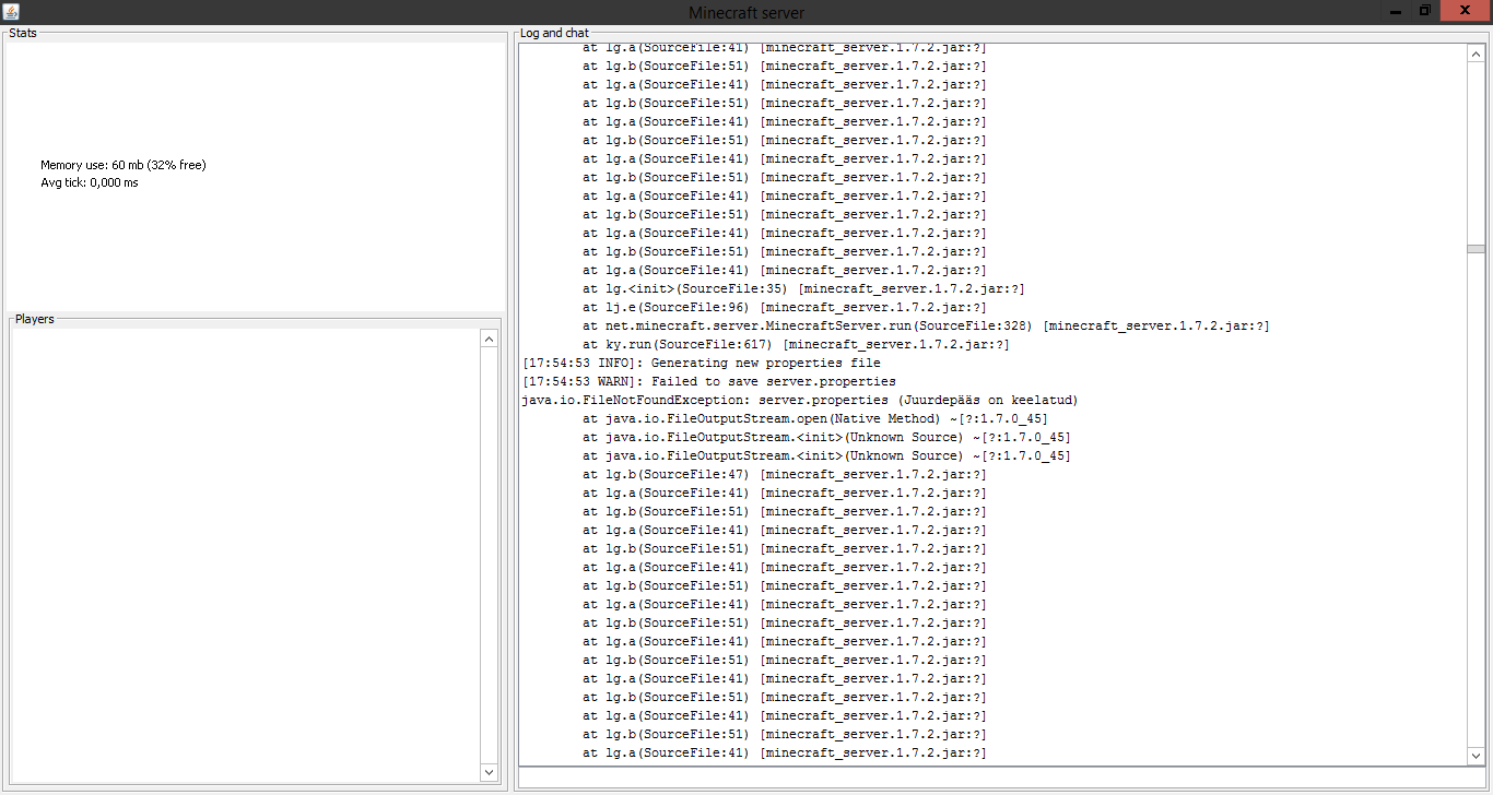 friends cant join my server. says cant connect to server. i can but they cant. please fix those errors shown on the pictures. our snapshot 13w41b server works fine but that has a .exe instead of a .jar. im aware that this is a duplicate of my ohter post but the mod didnt even take into account that there are pictures that show the error and errors have to be FIXED. atleast look at them please or send me a link to download the 1.7.2 server .exe file.