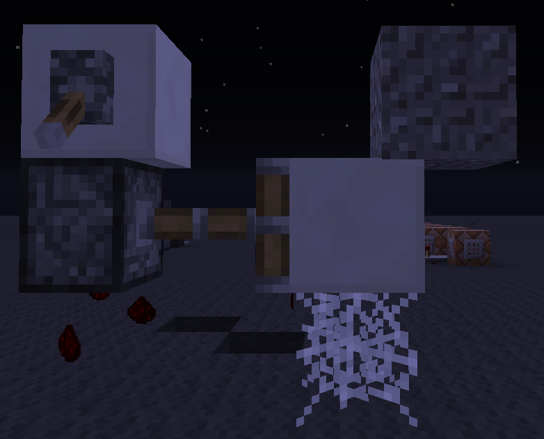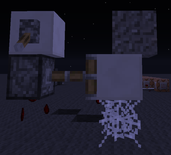 Now, toggle the piston so that the gravity block falls down in to the cobweb, and when it is inside it, extend it again, and you will get a weird visual glitch, where it appears the gravity block is on top of the solid block, and slightly off center. You can repeat this to make it even more off center, however, it only lasts as long as the entity is falling through the cobweb. After that the block will despawn.