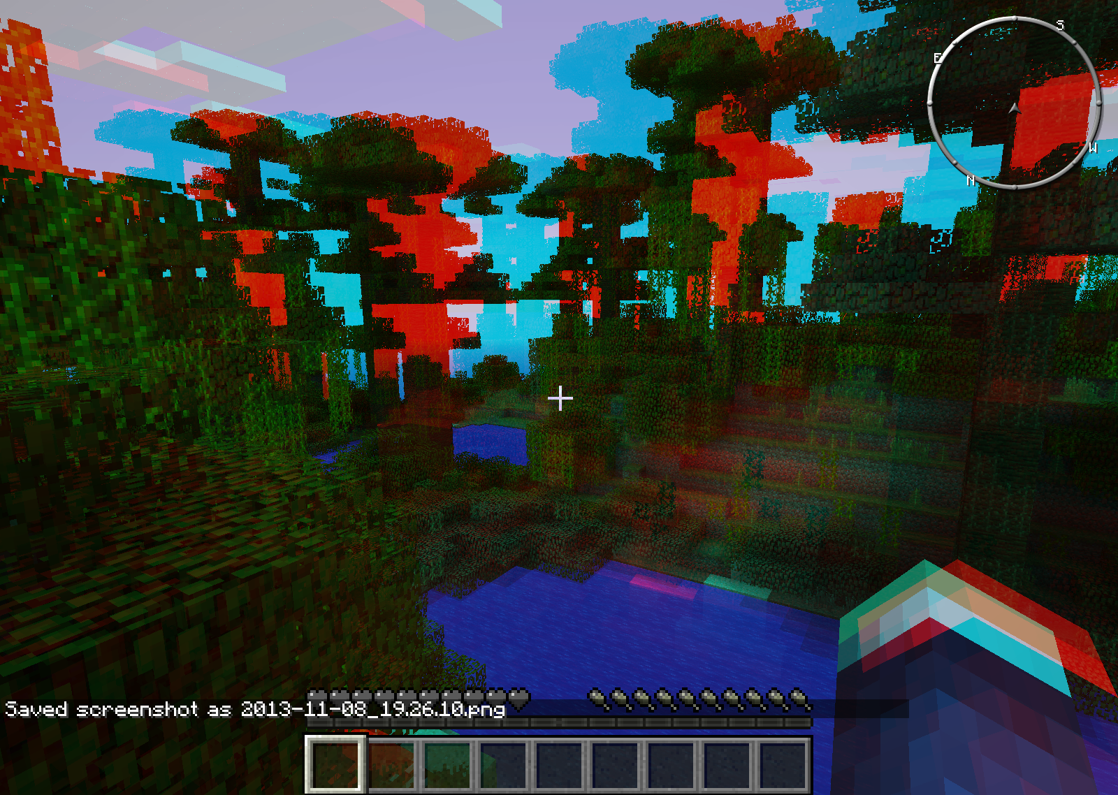My minecraft is being weird every time i log in to a server the screen has a reflection and duplicates of everything, and the color of these duplicates are red and green.
