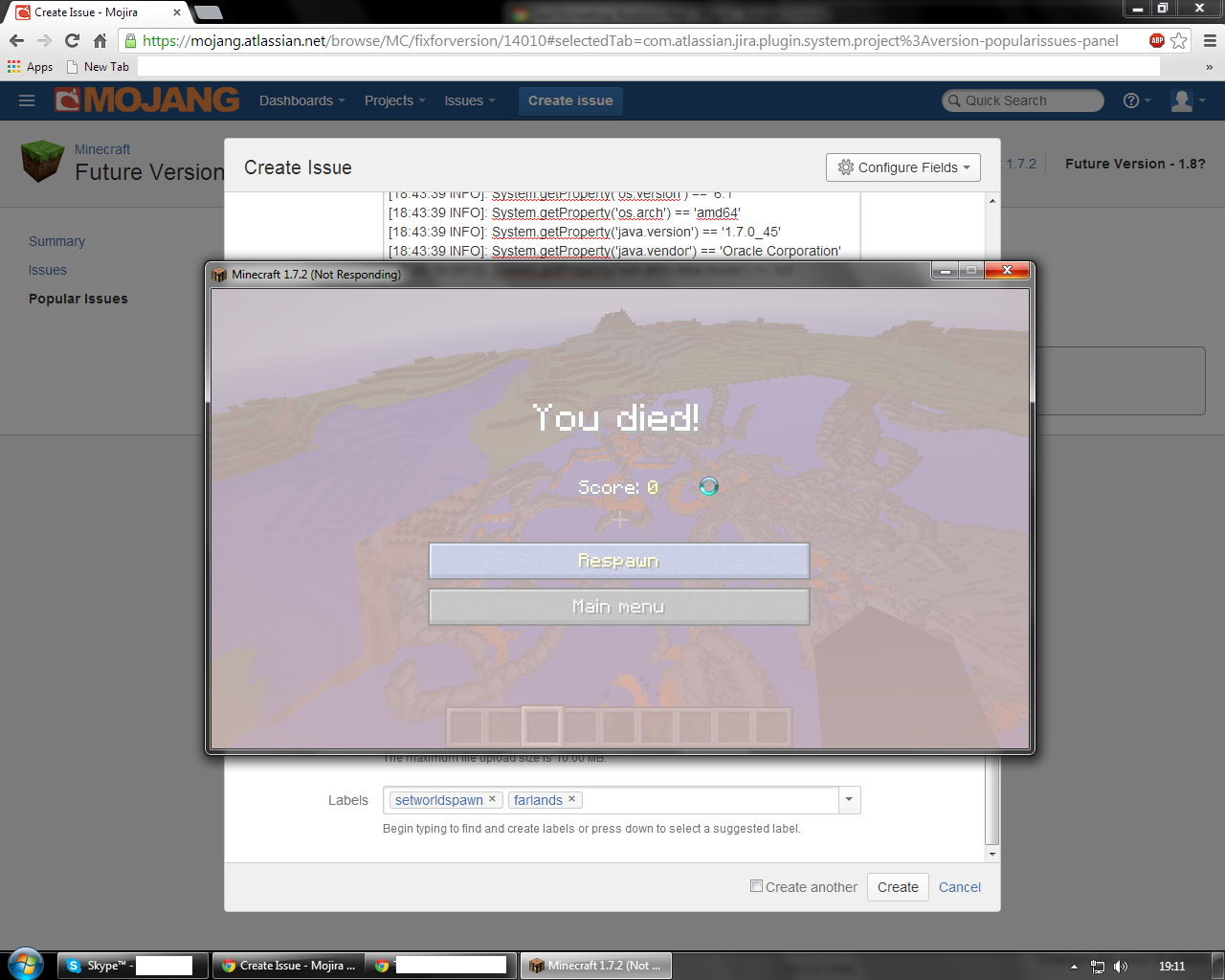 But, if you enter /setworldspawn 30000000 128 30000000 and you type in /kill, you will be respawned in an illegal area, where you can't respawn, and after some respawn tries, Minecraft freezes.