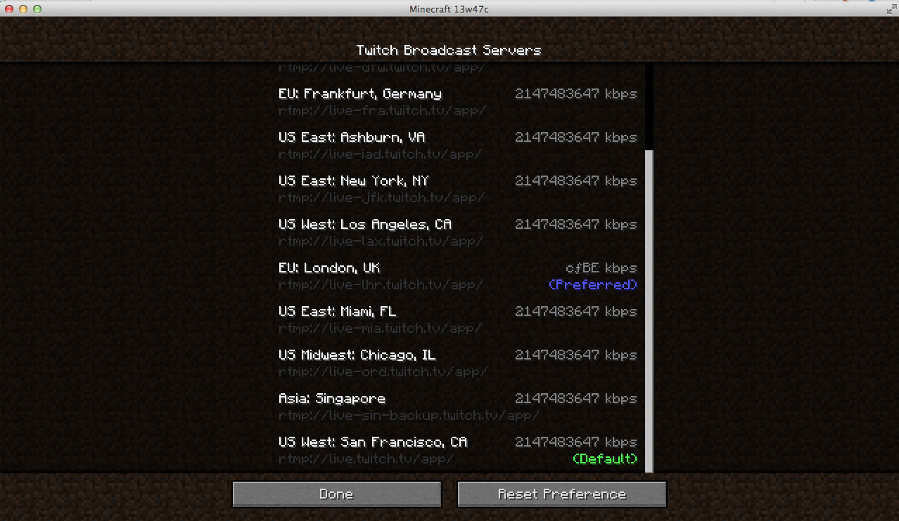 When in the Twitch Broadcast Server screen there are a jumble of shapes next to the possible servers, after about 30 seconds they begin to form numbers (assuming Ping status).