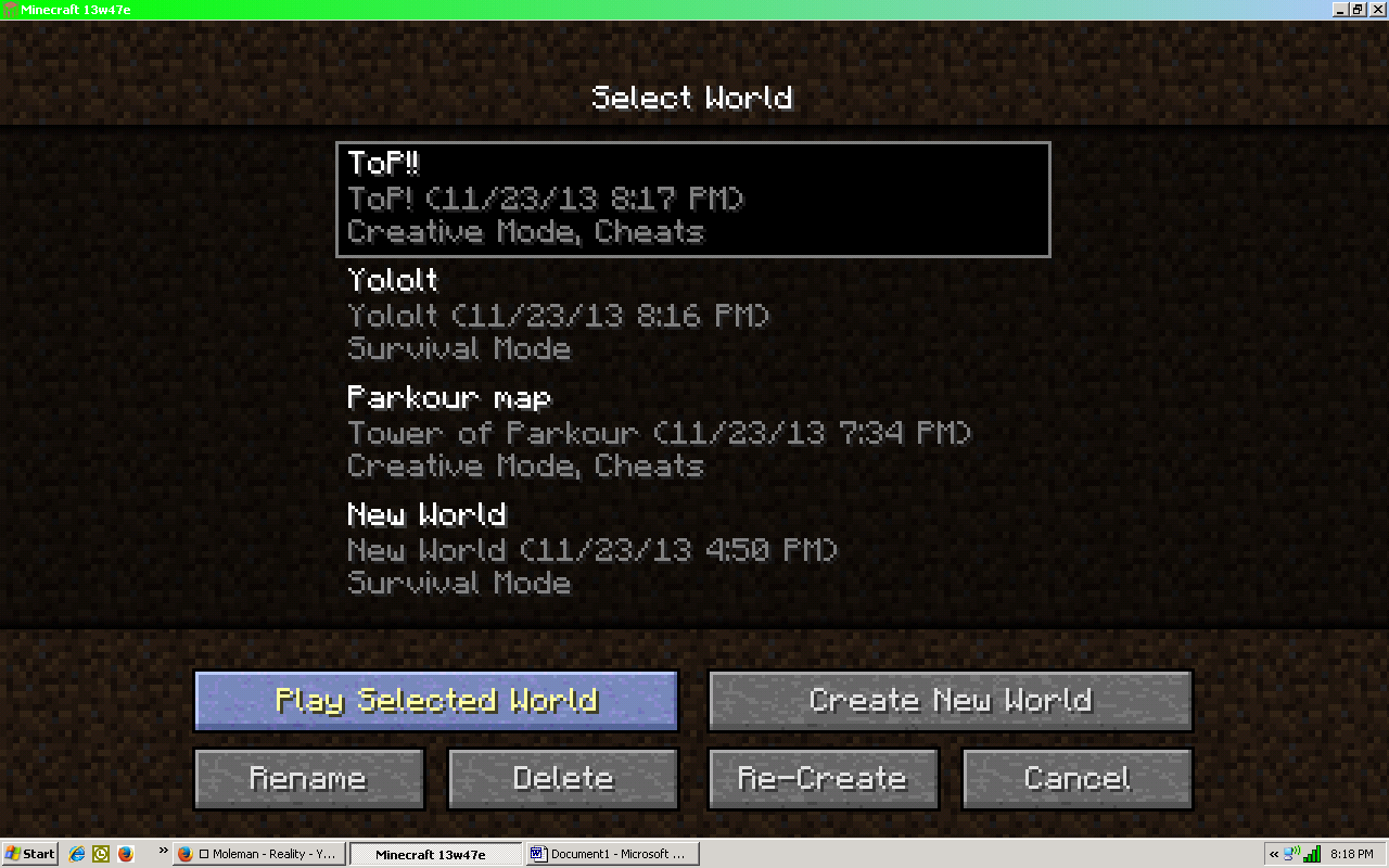 open. notice i tried entering the world twice and i am using 13w47e, but it