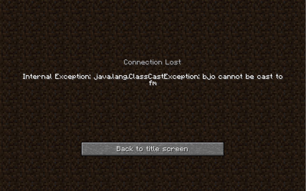 When you load a singleplayer world, With a non-updated graphics card, An error appears saying Connection Lost: Internal Exception: java.lang.ClassCastException: bjo cannot be cast to fm.
