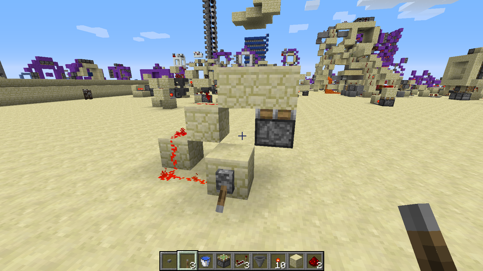 3. Place redstone next to the block that the redstone torch is on top of and run it into the block that is diagonally above the piston. Then power the block that the redstone torch is on top of and watch it happen.