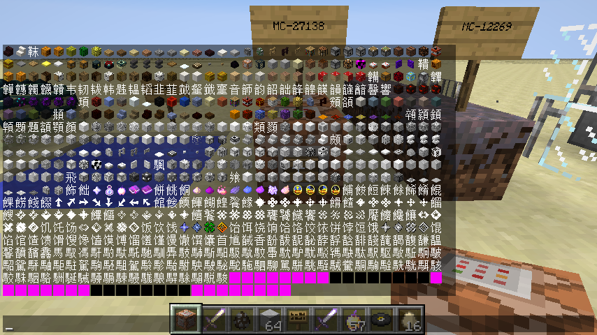 Observe that the chat has changed to something similar to what you see in the attached "gsb_default.png": all printed characters have become black and magenta squares. These are the game's placeholder texture as the requested unicode_page files are not present in the Default resource pack.