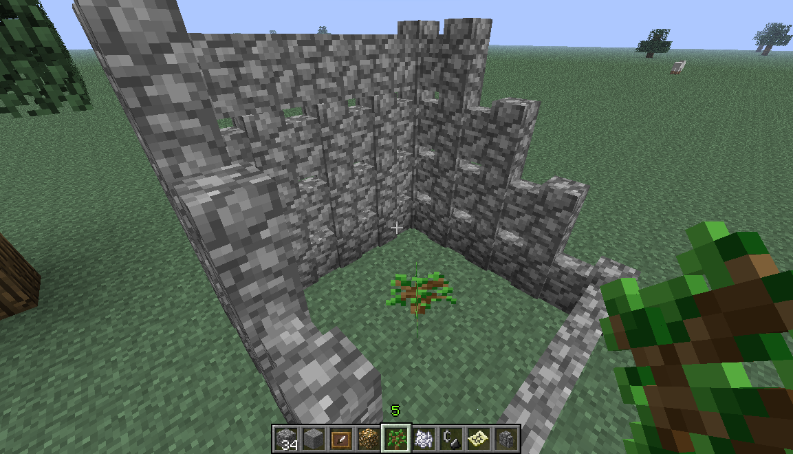 2. Place mossy cobblestone (or presumably also cobblestone) wall close to the sapling and above, at leaf-height).