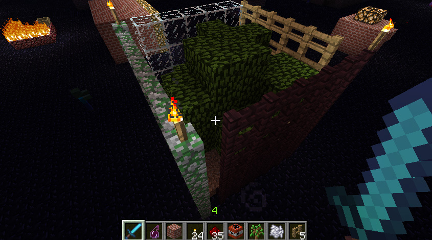 I had the trees in a deep pit surrounded by a mossy cobblestone walkway and mossy cobblestone wall for aesthetics; a segment of the wall at the top was replaced by leaf blocks.