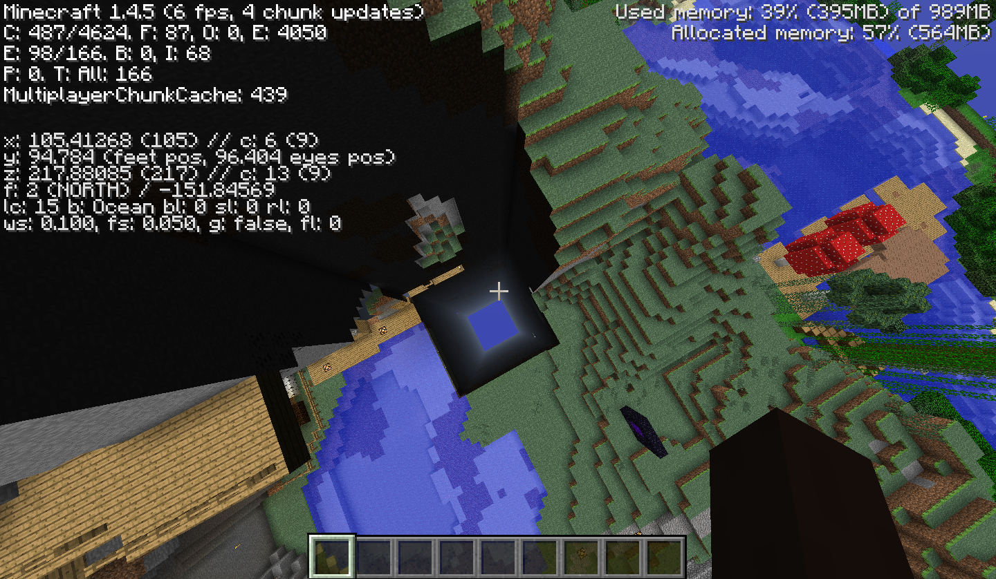 I was mining and when i came back i saw 2 chunks missing. at first i thought to save and quit and restart the world but it didnt work. I tried updating the blocks next to the chunks but that didnt work either. I couldnt get into the chunks in survival so i switched it to creative and flew into them i press f3 it says im in an ocean biome