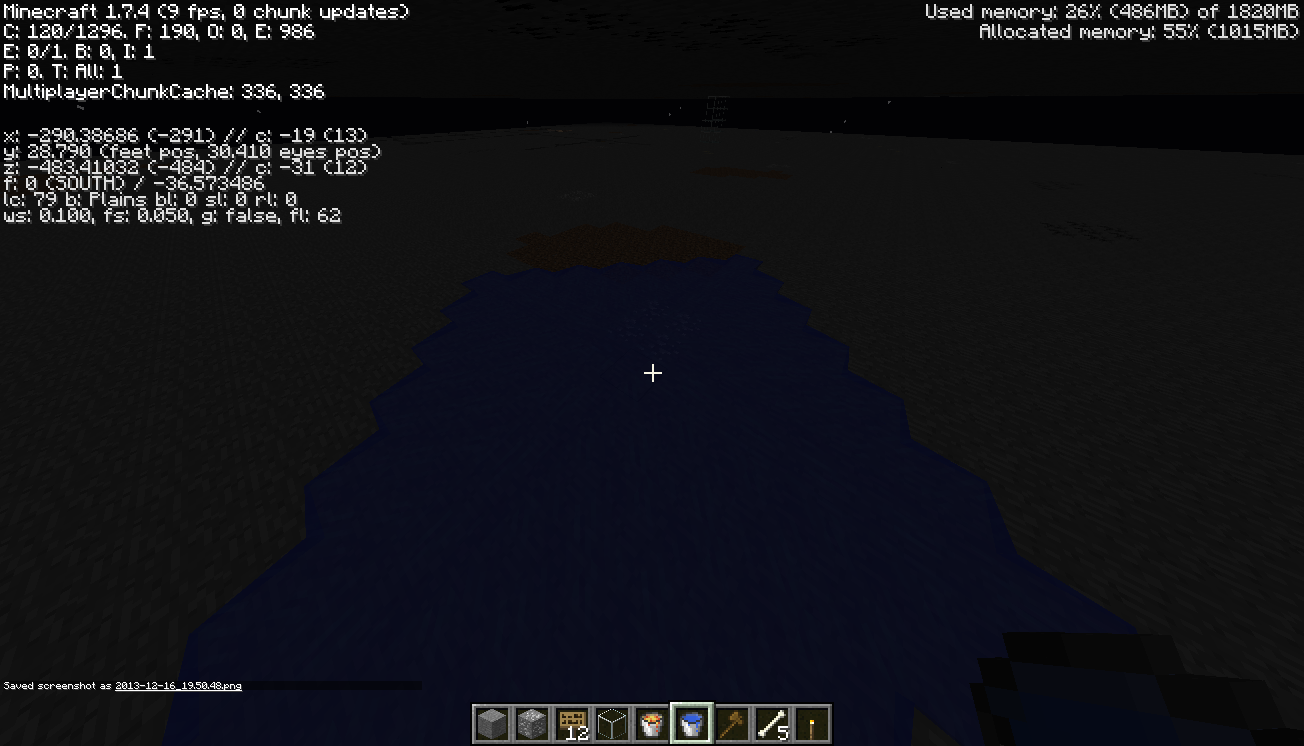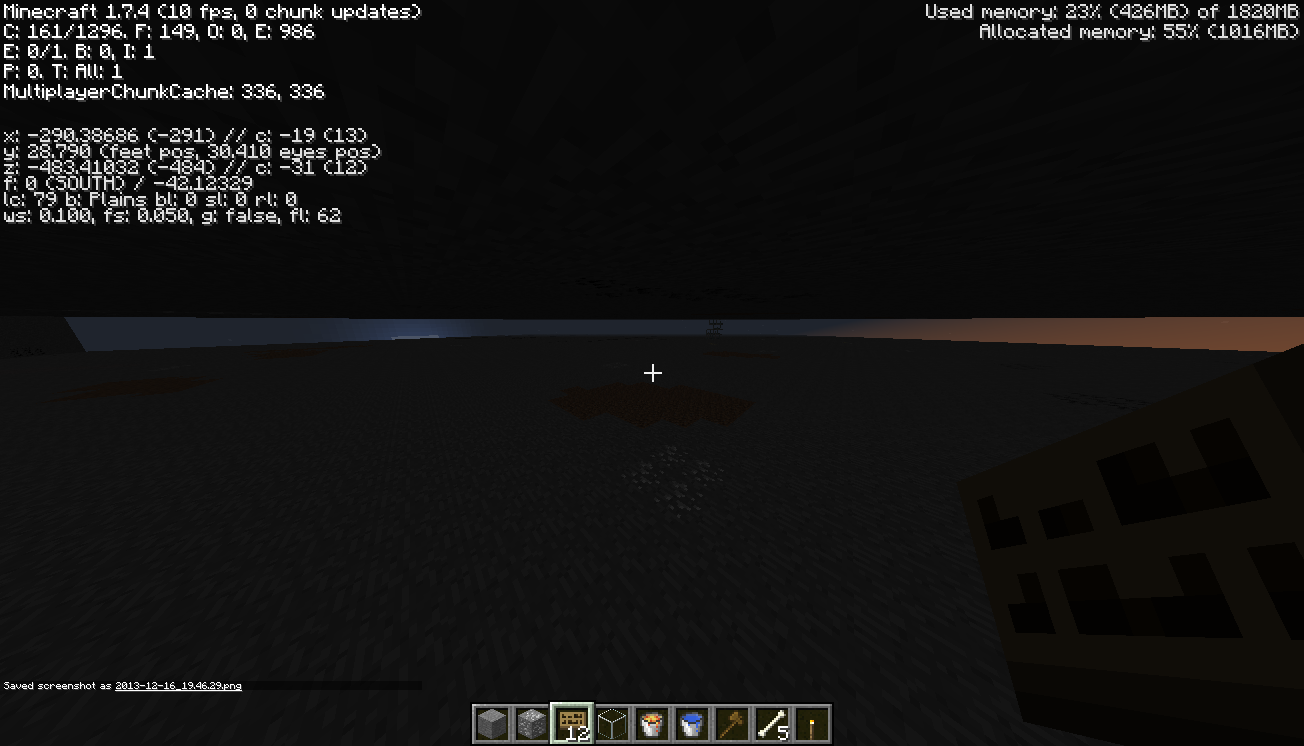 While hosting a 1.7.2 default Minecraft server, 1.7.4 client, I was digging around underground, when I decided to pause the client and change the system time to edit some old .mp3s(without losing their created date/time) to March 26, 2013, and then I changed the date back to today, December 16, 2013, and when I resumed the client, I noticed that when I place water, the effect was INSTANT, and the sun/moon were flying around the skybox, verry fast. Lava did the same as water, but was slightly slower to dry up. Here's the server log while I was doing the above: http://redsandbox.no-ip.org/Files/Minecraft/Glitches/Fast_Daylight_cycle.txt