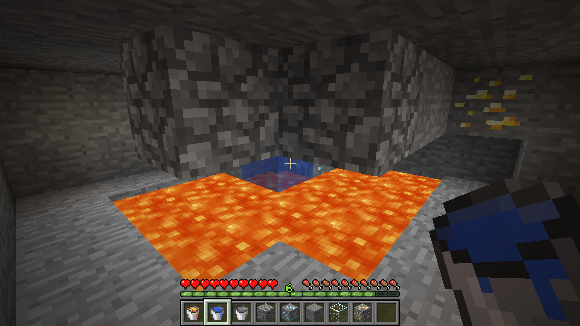 Try to put and retrieve fast a bucket of water (to turn lava into obsidian).
