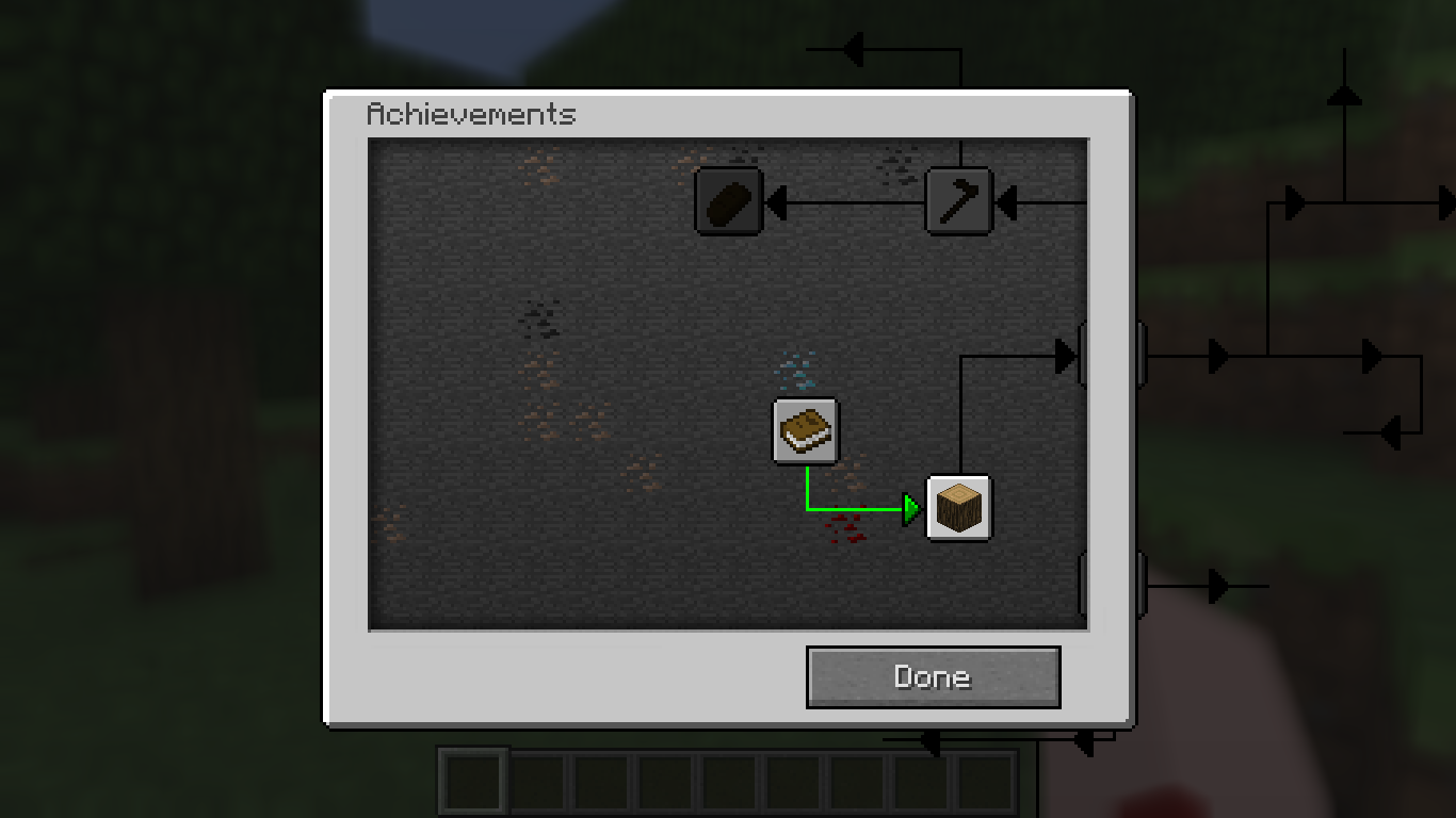 When any shader is selected with "Super Secret Settings", going on achievement menu you can see that the lines of the achievement "tree" exceed the limits of the screen. A little part of the icons pass too, but when it moves away a little more from the border, it disappears, leaving only the lines.