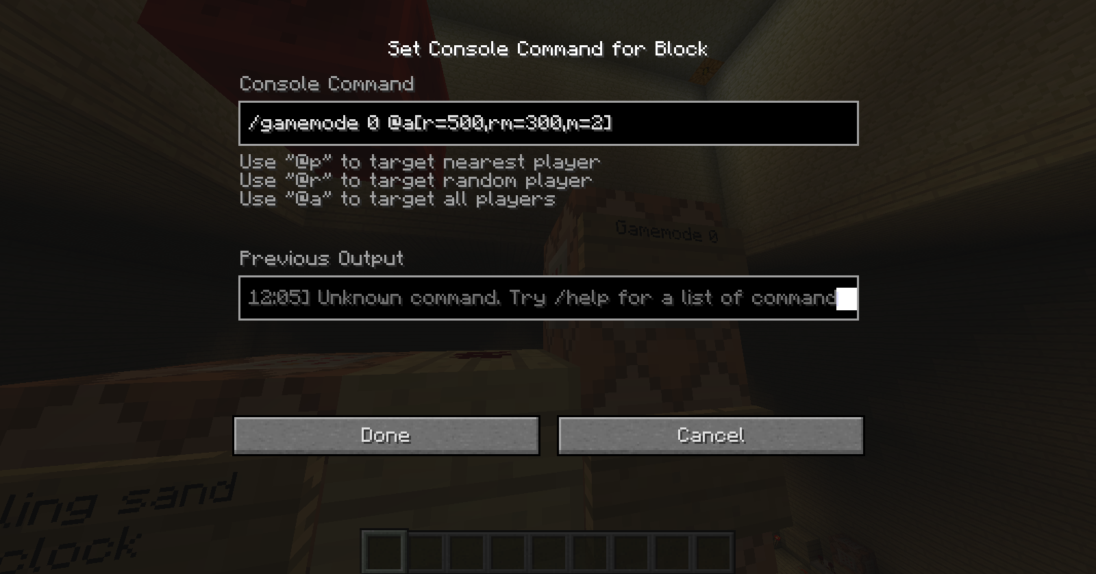 When using the commands "/gamemode 0 @a[r=500,rm=300,m=2]" and "/gamemode 2 @a[r=299,m=0]", even though im whiten the radios of the second command, it still updates my gamemode, with the same gamemode. I just keep getting a "Your gamemode has been updated" message. This should not happen the way i have these commands set up.