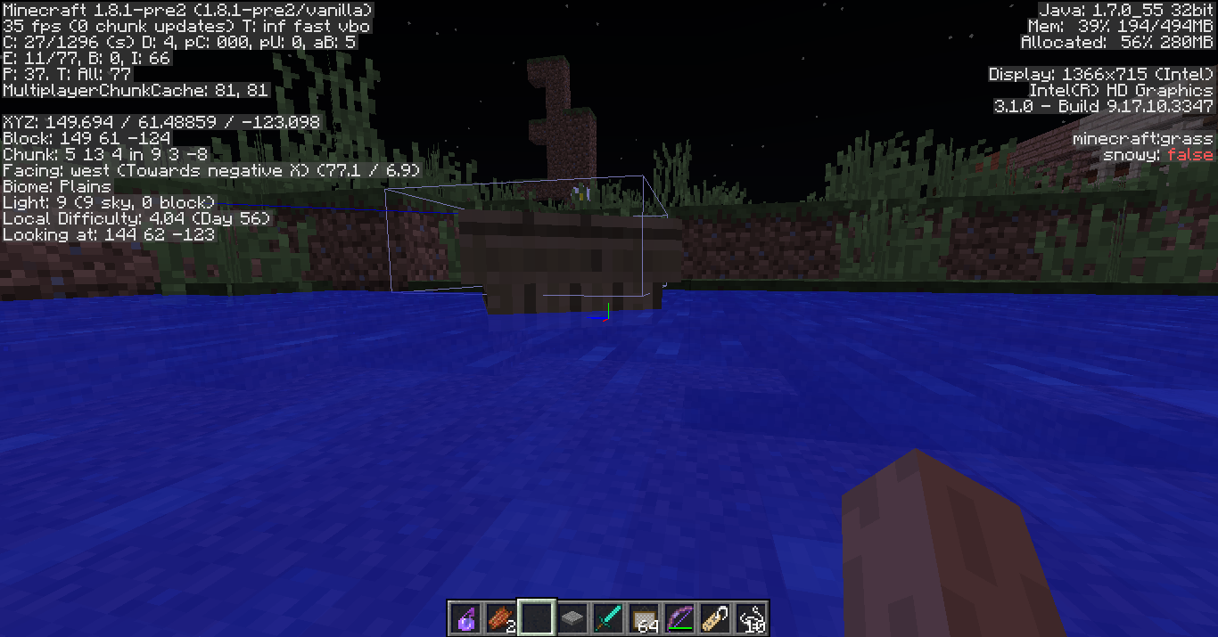Boats sink always about 2/16 pixel in the block below, regardless if this is water or a solid block.