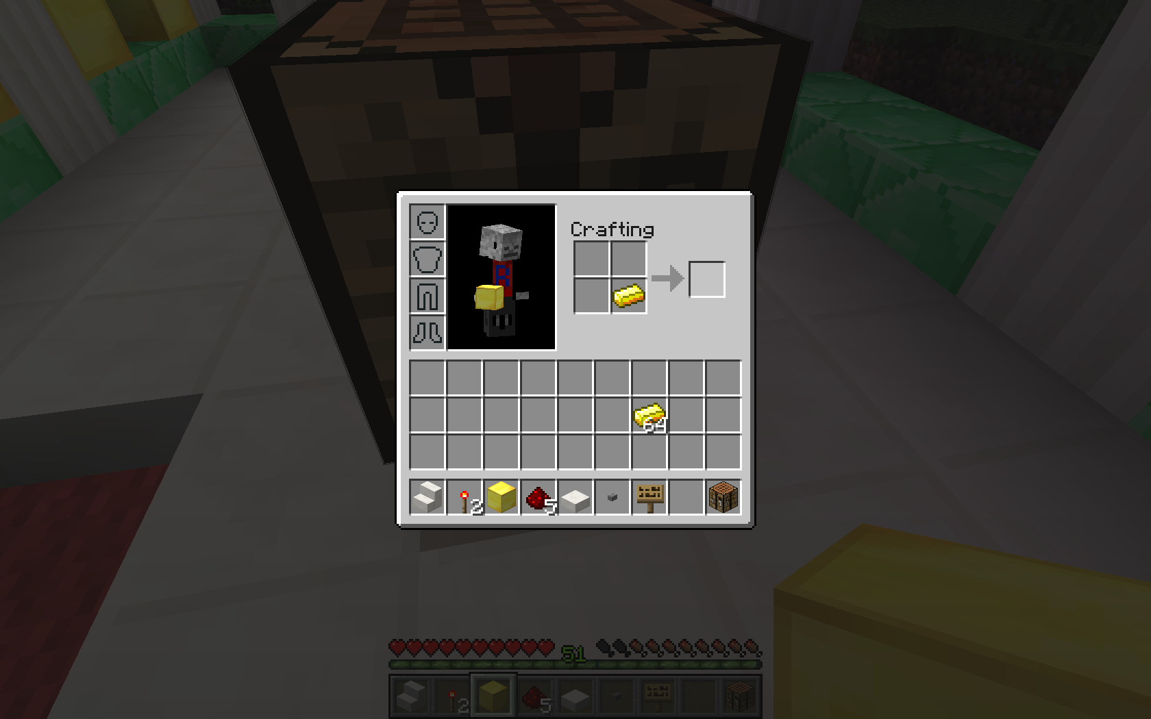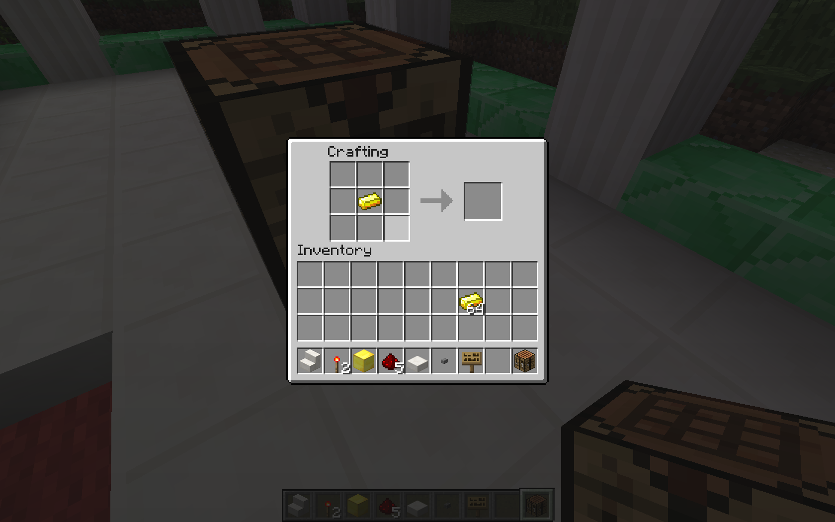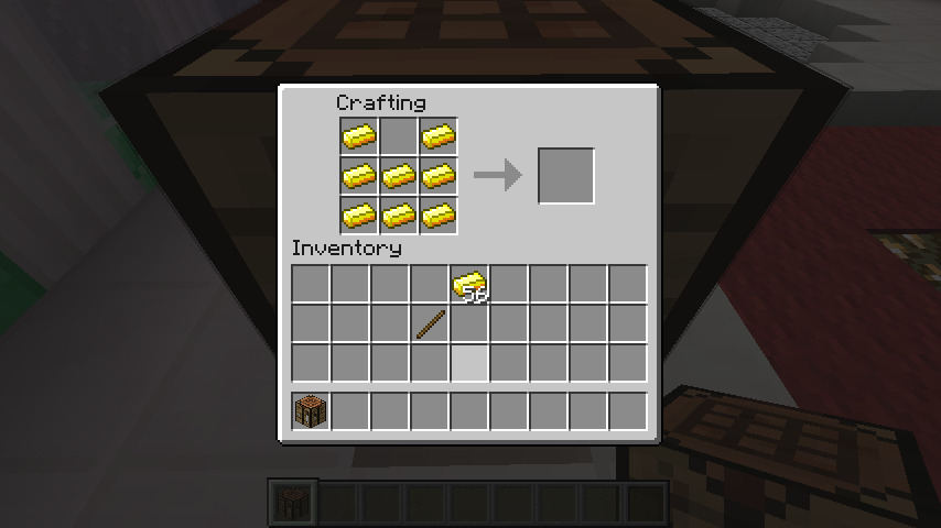Gold ingots summoned from command blocks are unable to be crafted into anything via crafting table/survival inventory crafting