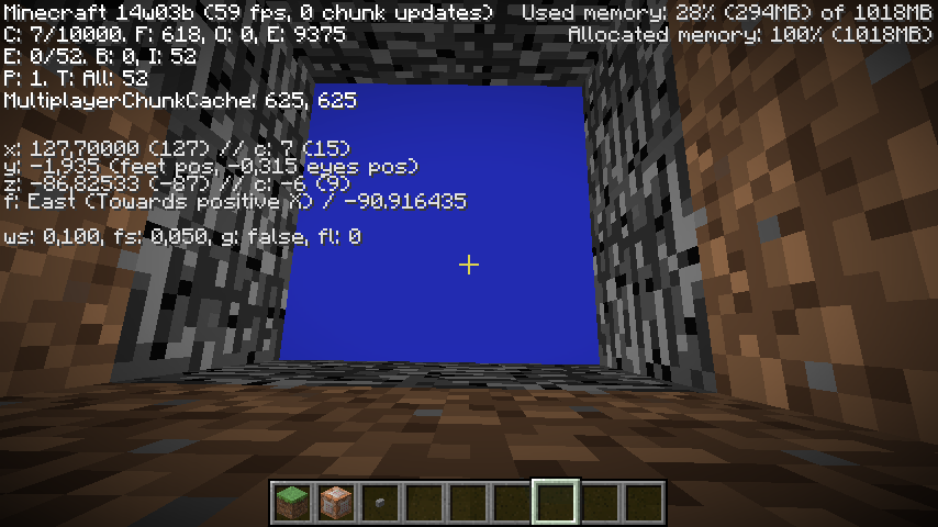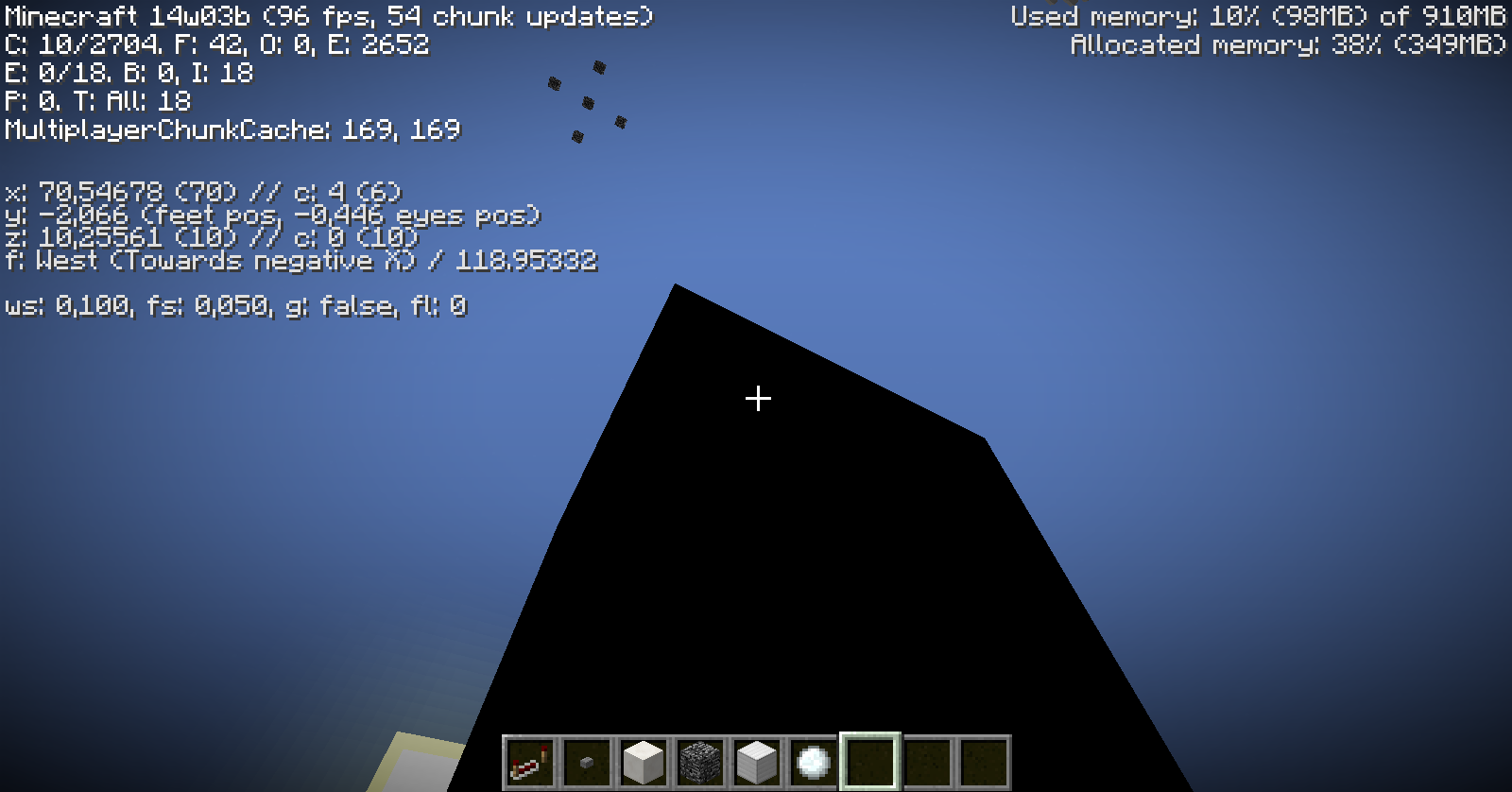 When entering the void in third person mode (F5) player skin disappears, it doesn't happen in 1.7.4.