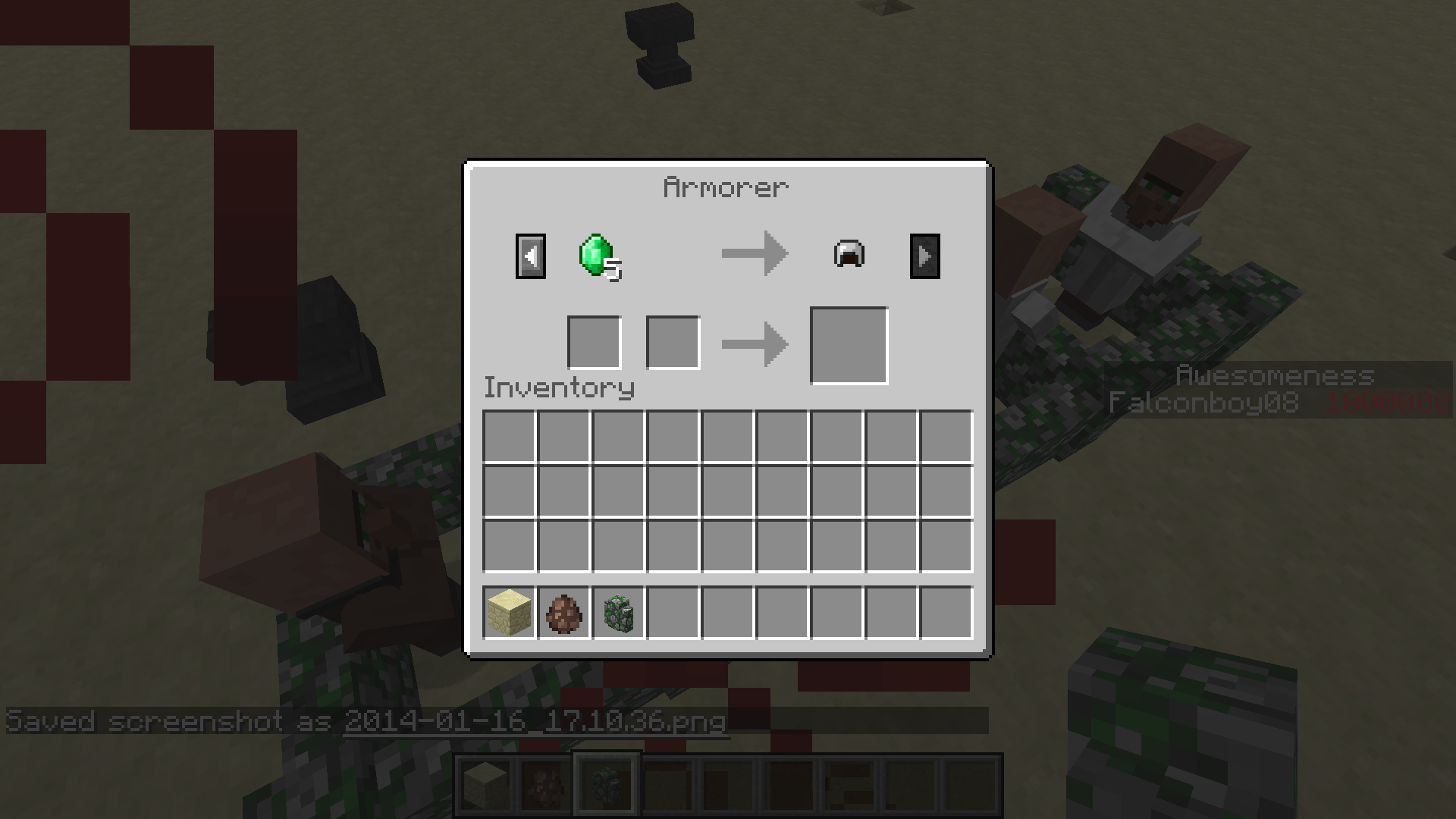 All Armorers will spawn first buying coal then selling a helmet. Then they will buy iron, then sell an iron chestplate , then buy diamonds, then sell an enchanted diamond chestplate.