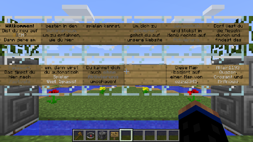 /setblock ~ ~ ~ wall_sign 3 place {Text1:"§lWillkommen!",Text2:"Bist du neu auf",Text3:"§6U§8G§fCH§r?",Text4:"Dann gehe am"}