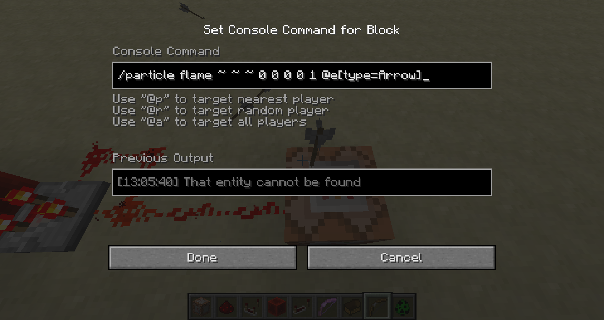 As you can see, the command doesn't recognize arrows as a valid target.