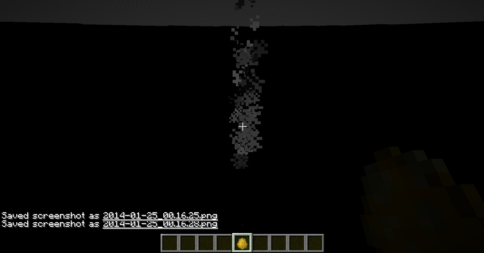 *What actually happened was Well I was messing with the entity teleportation when I realized that the entity I was useing(zombie) dissapeared when I pushed it into the void.Then I tried an item...the same resoult.But when I used a Blaze the particles where still there and thus so the blaze.