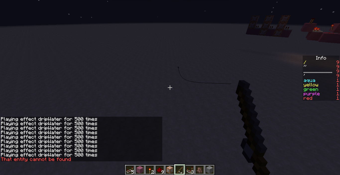 It also say, after all the "Playing effect dripWater for 500 times" The same: "That Entity cannot be found"