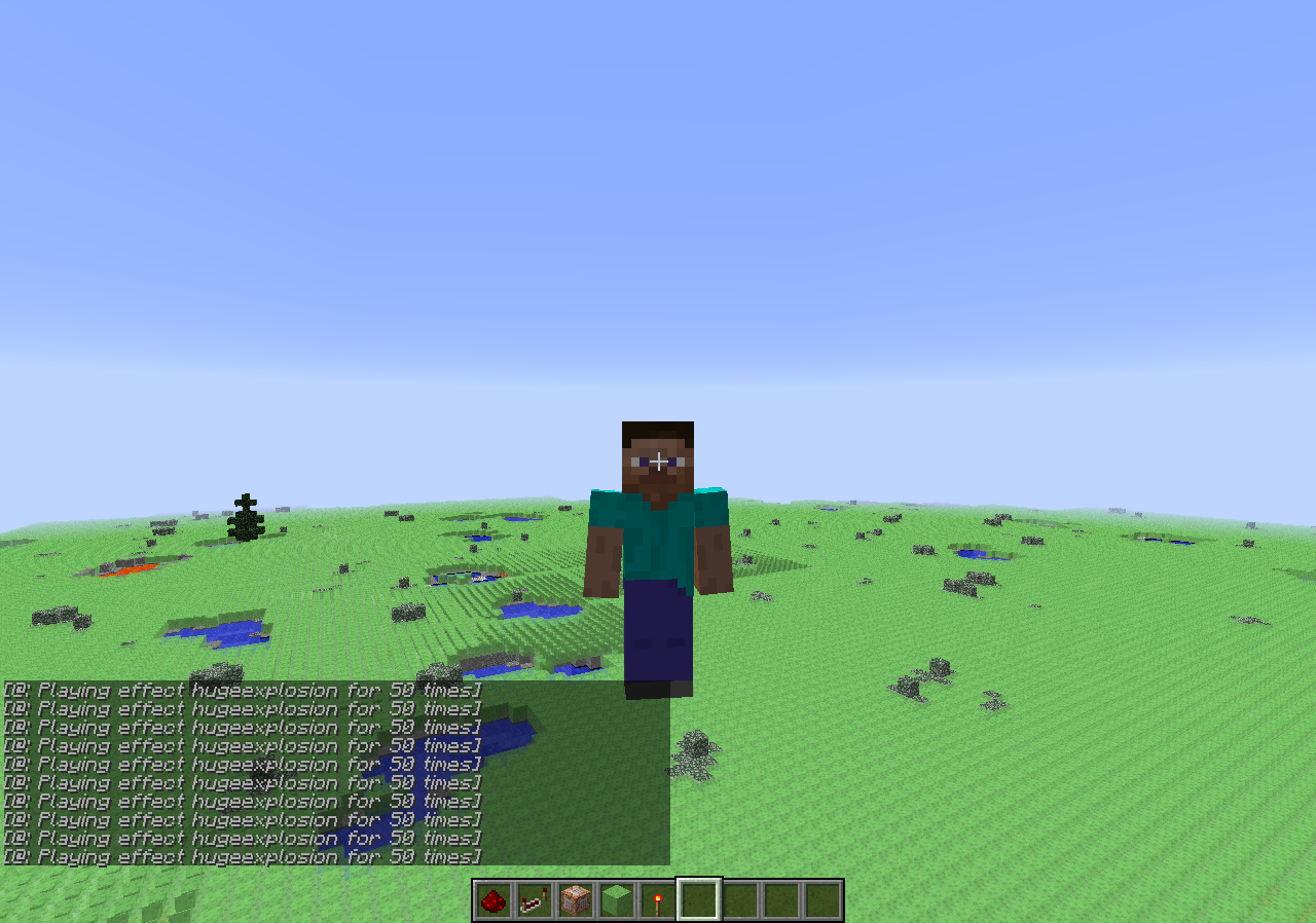 2. put /particle hugeexplosion ~ ~0 ~ 0 0 0 0.5 50 @a in the command block