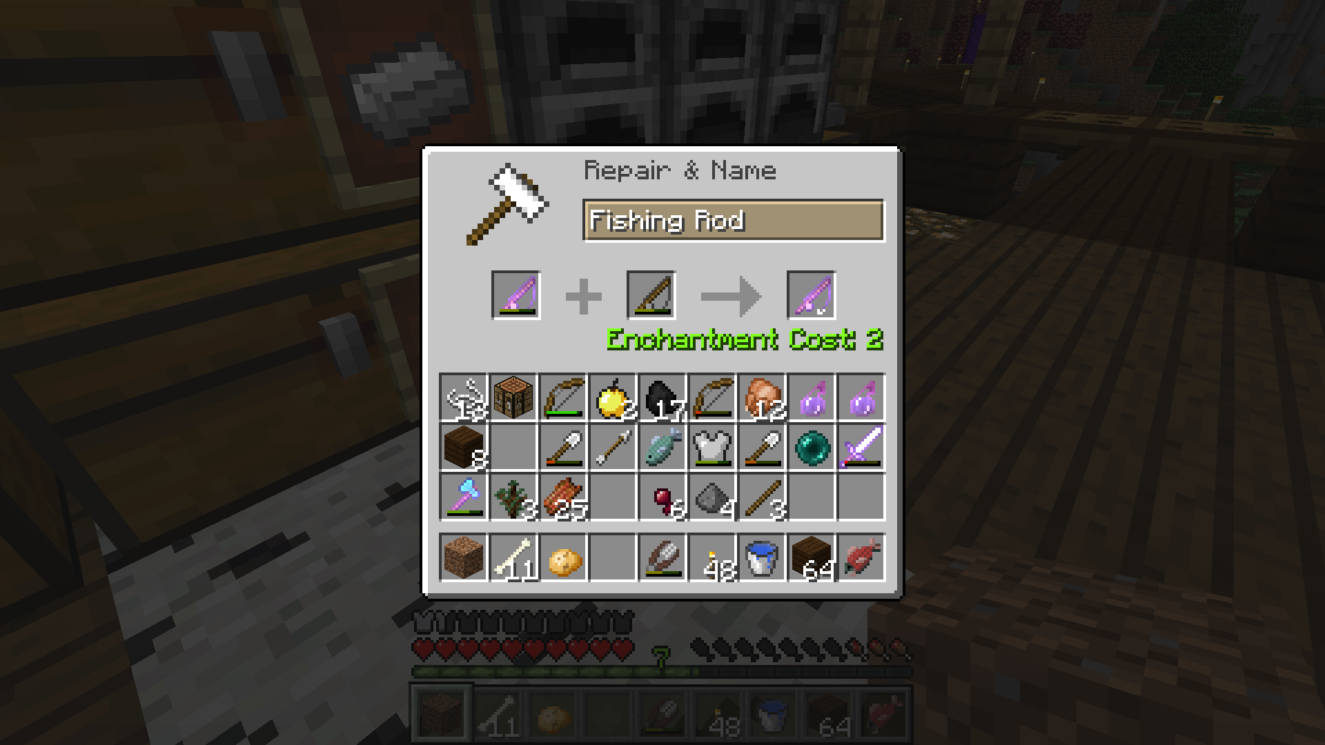 When repairing an enchanted item in an anvil with another item, the cost is increased when the enchanted item is placed in the second slot.