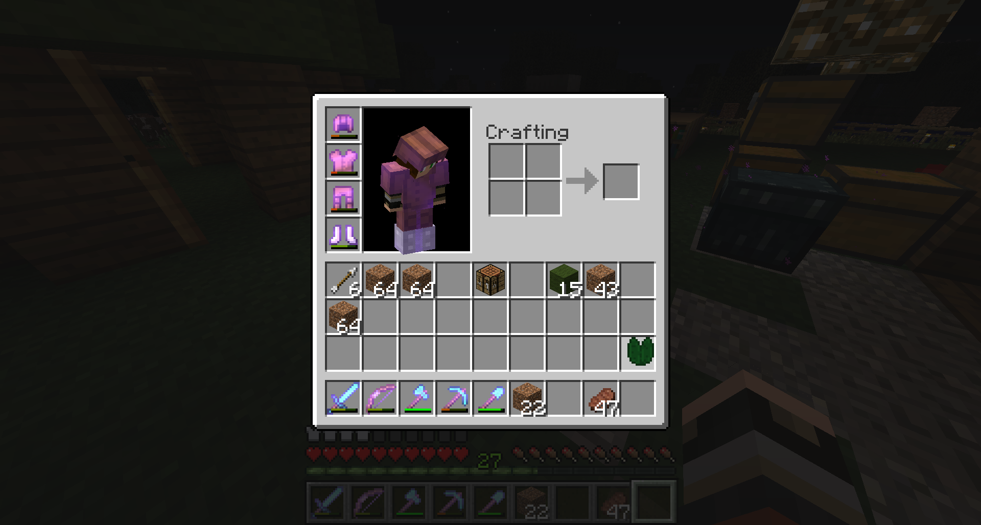 When you have an enchantd item in your hotbar, your hearts and food bars have a purple tint.