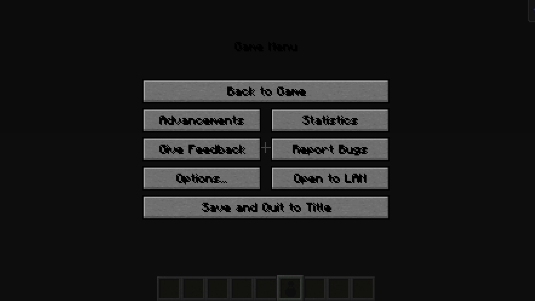 → ❌ Notice the screen becomes completely black, effectively hiding the world.Alternatively, give yourself Blindness while underwater.