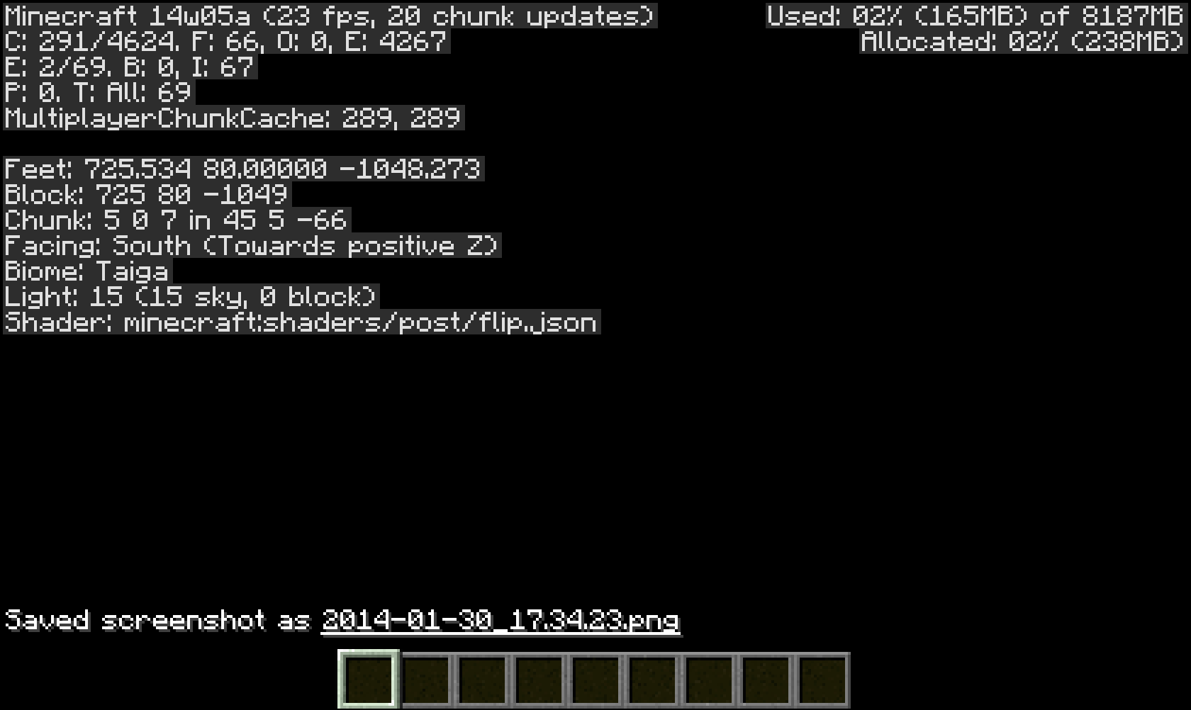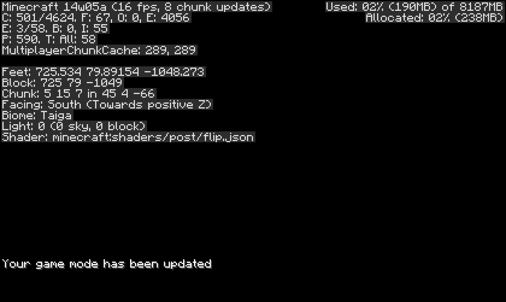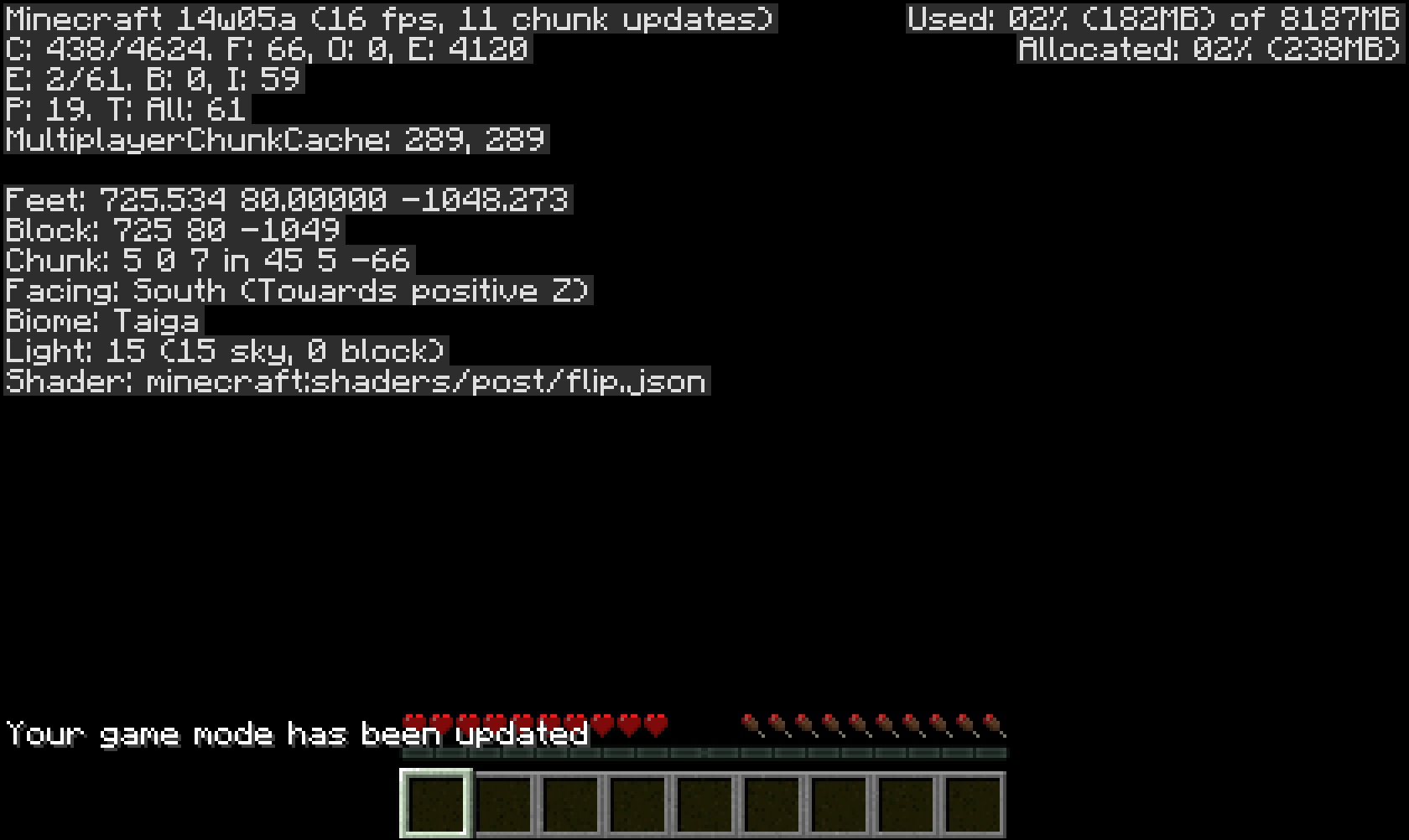 The minecraft world went completely black, regardless of the time etc. and the hotbar stayed at the bottom of the screen instead of the flipping upside down and going to the top. This happened regardless of the gamemode and the hand/item was also black.