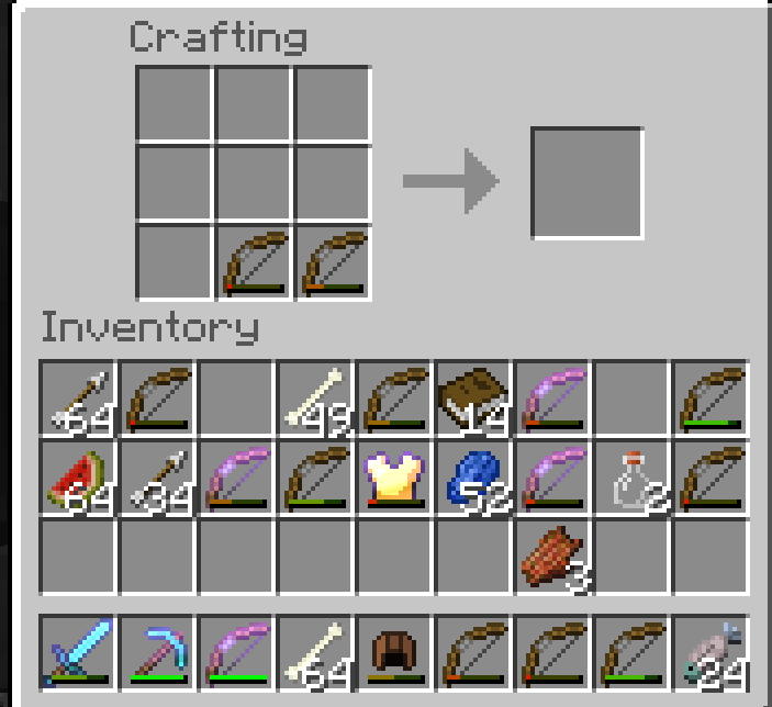 When combining two unenchanted bows in a 3x3 crafting table or the 2x2 crafting in the inventory screen, a repaired bow is not shown as an output item, which is what happened on previous versions.