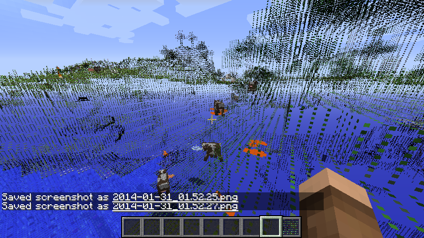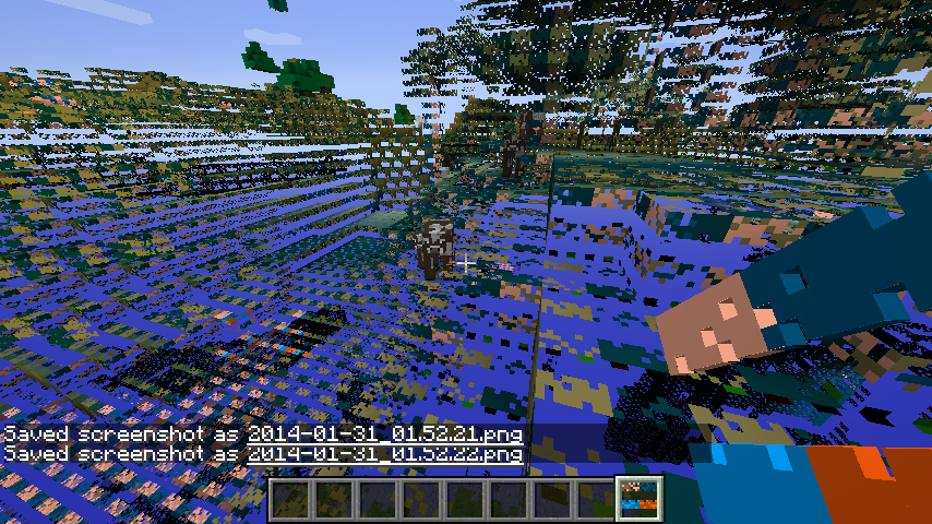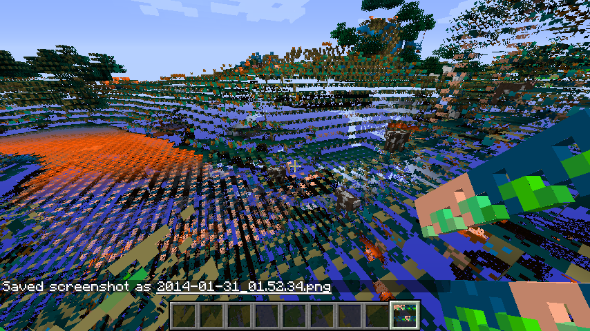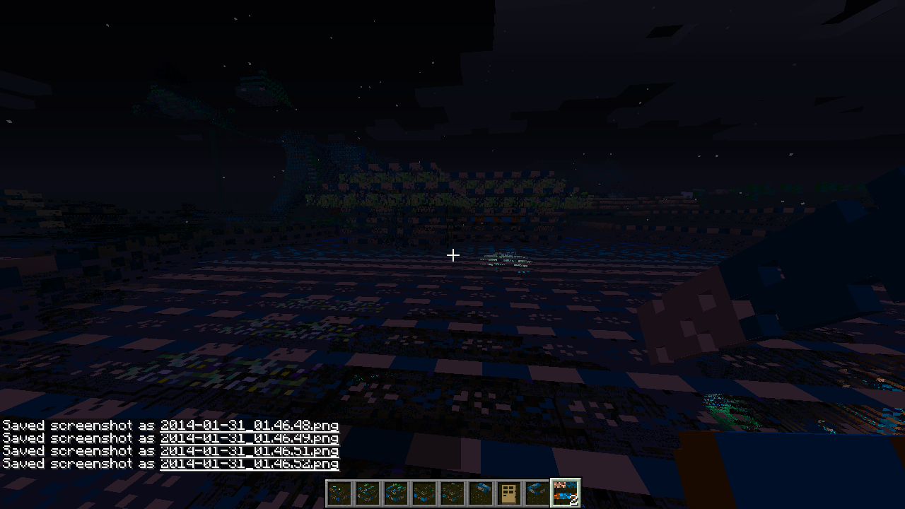 The entire world became one big broken texture. It was see through, it was Flashing all over the place, everything but the entitys were broken. (see attached pictures)