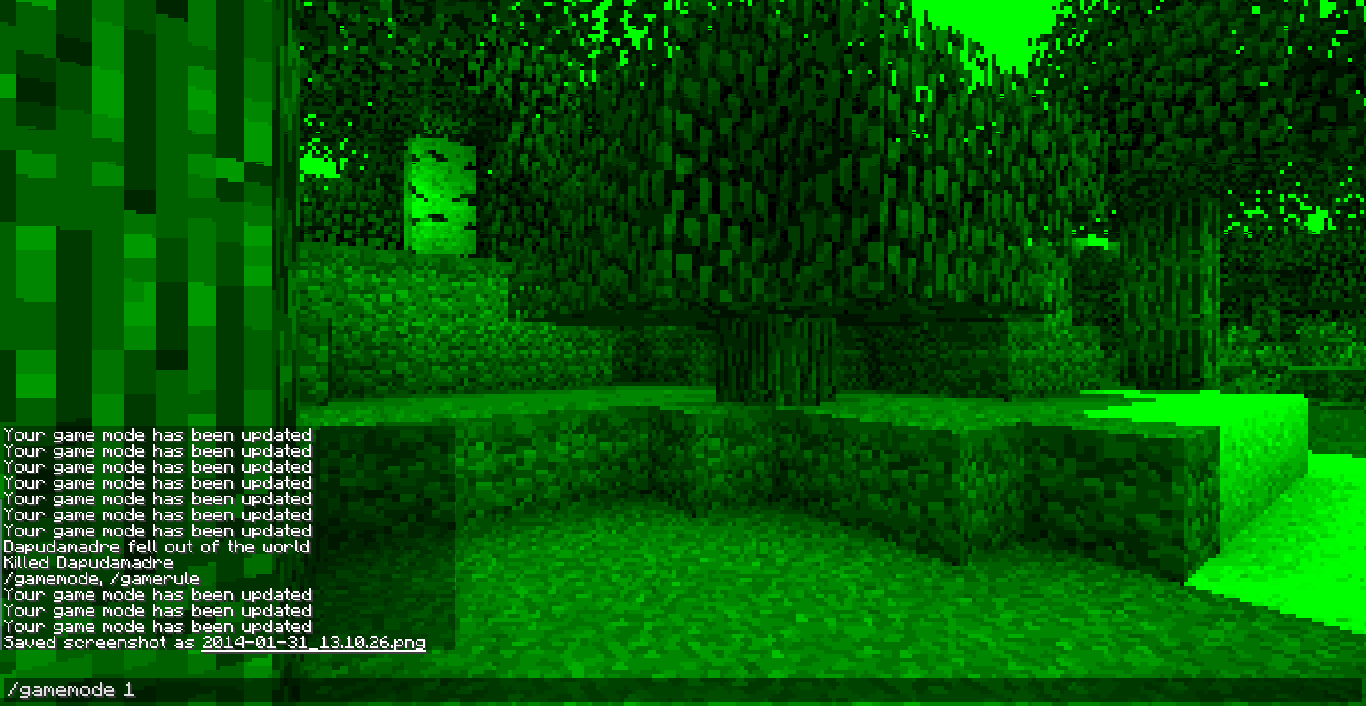 Entering a creepers body in spectator and changing the gamemode to survival makes the creeper explode while you are still in it and after you respawn you still have the ceeper vision until you enter a mob that has normal vision.Also pressing the number keys in spectator will show the player the name of the item in the item slot but not the item.