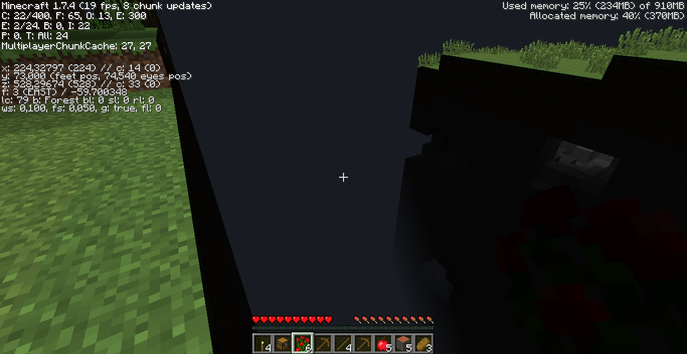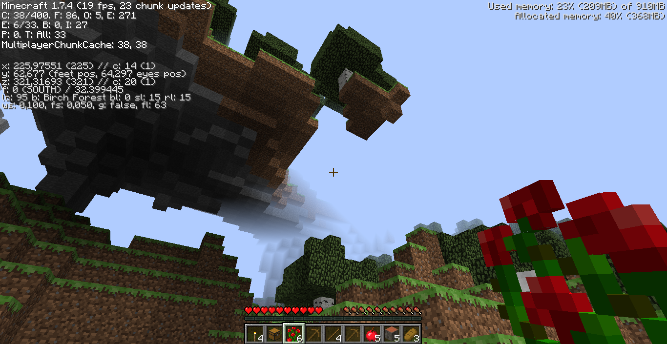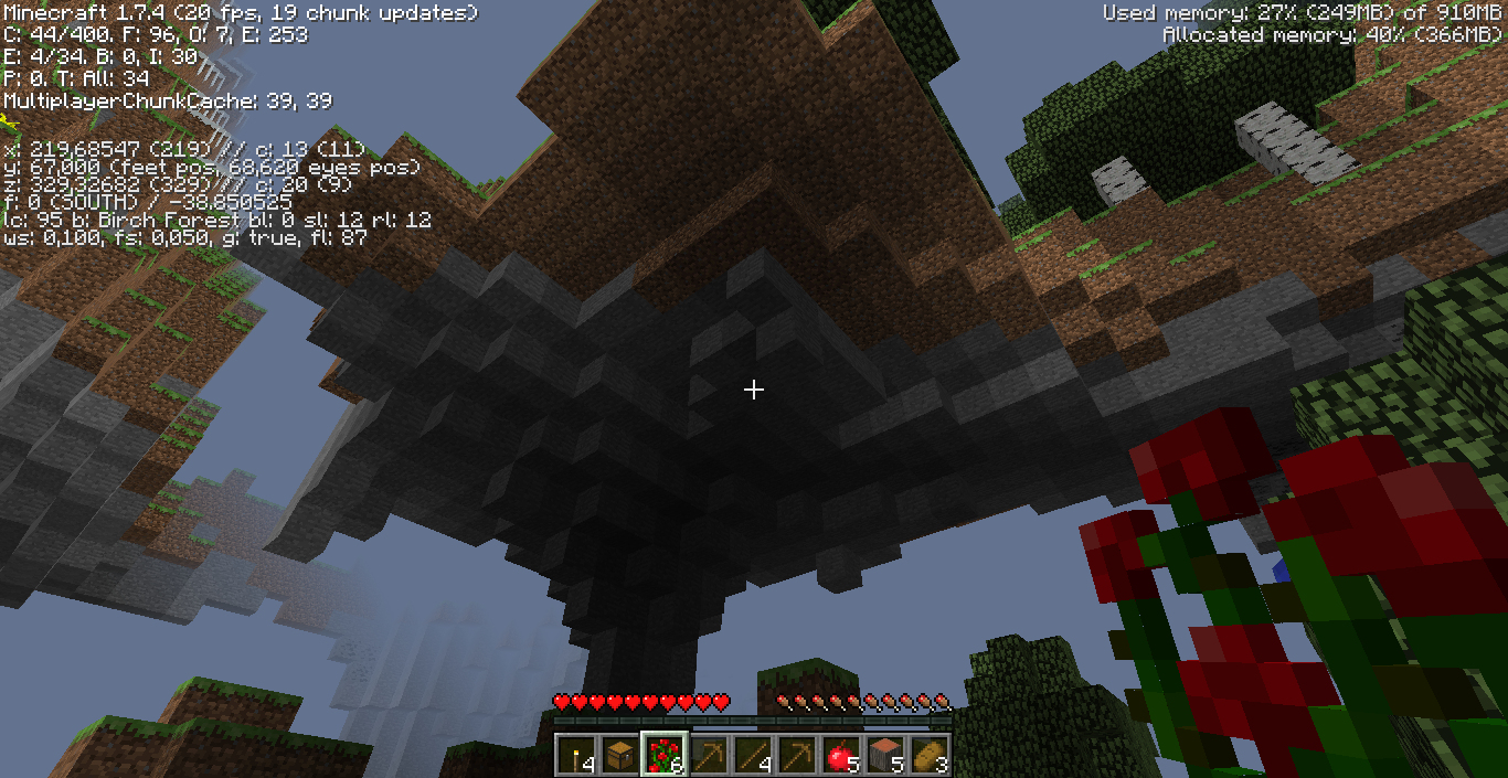 I was exploring the world and i've seem a floating island, then the world bugged and a crack appeared and I floated on top of it. It was strange, because i have no mods.