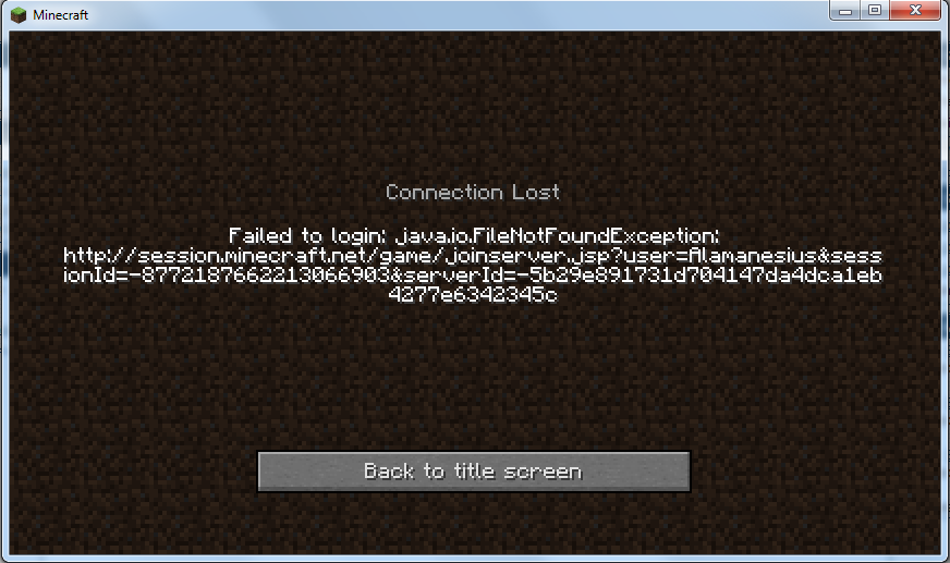 Failed to Login: java.io.FileNotFoundException: http://session.minecraft.net/game/joinserver.jsp?user=<My name>&sessionId=<ID>