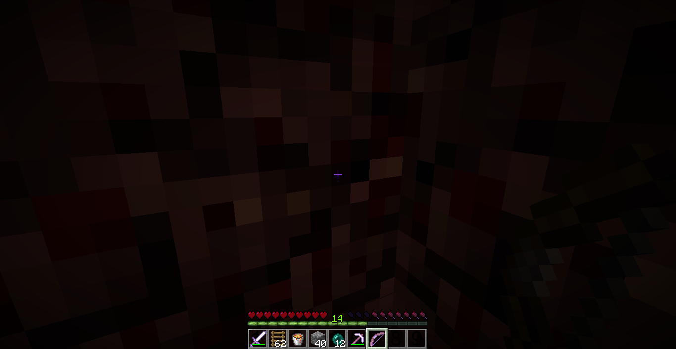 4. Notice how the crosshair/hunger and health bar darken to the color of the glint of an enchanted item.