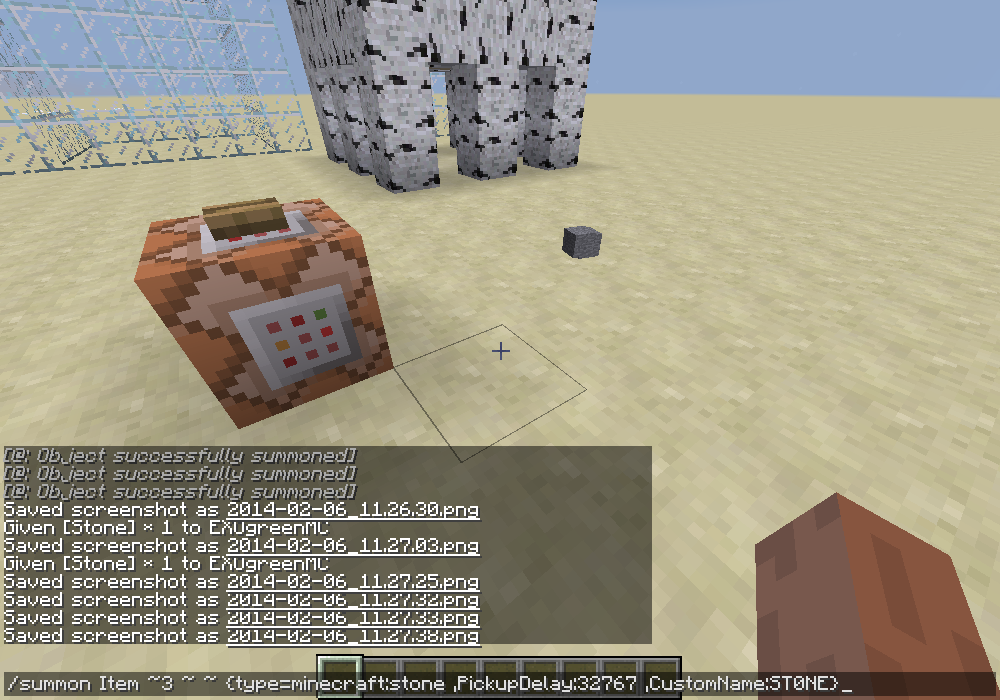 test 4, 1 stone summoned with the command /summon Item ~3 ~ ~ {type=minecraft:stone ,PickupDelay:32767} then summoning an item using /summon Item ~3 ~ ~ {type=minecraft:stone, Age:-32767}. Result, the custom pickup item stacked with the custom age item and obtained all the properties of the custom pickup item AND the custom age item as the stack has yet to despawn 20 minutes later.
