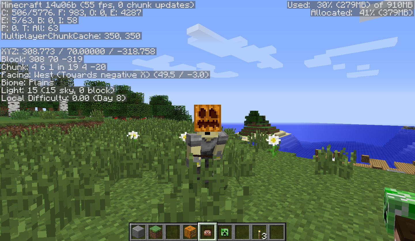It appears, when crouching, the decoration heads and pumpkin (when placed on the player's head) floats at the height of normal standing position.