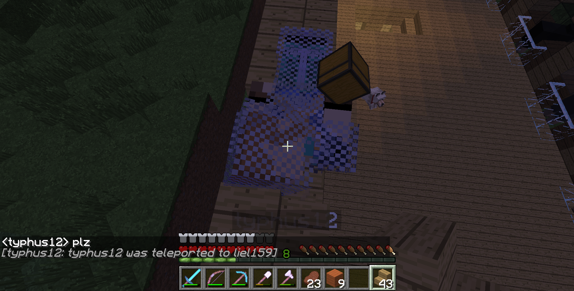 I was playing with a friend and he tried to tp to me when sleeping, so he sleeped on wood...