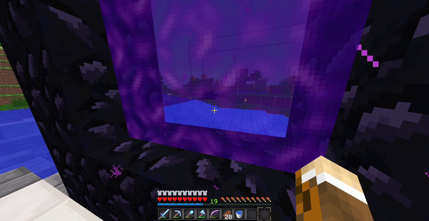 I didn't see this issue on here. So when you place water behind a nether portal, the color turns bright blue. Attached are examples.