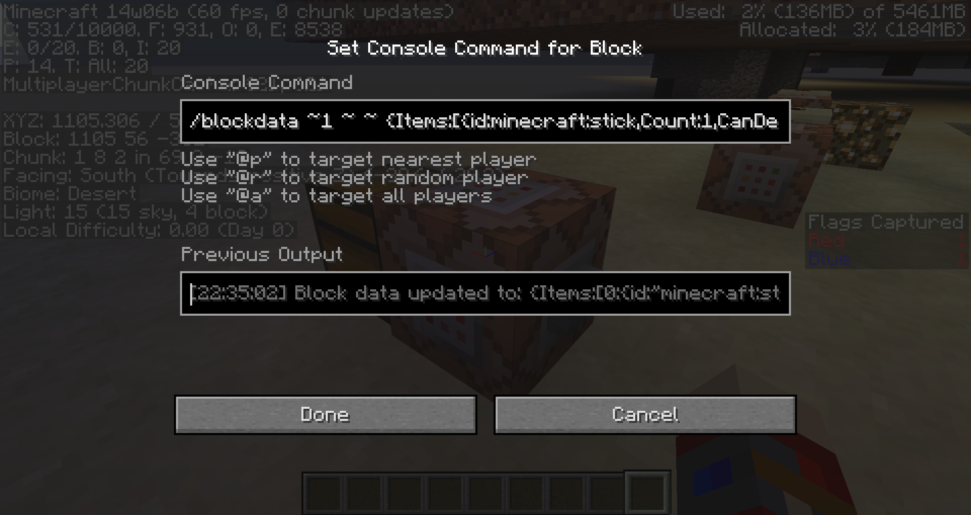When used as a modifier for an item created using the /setblock or /blockdata commands, CanDestroy effect will not be added to the item.