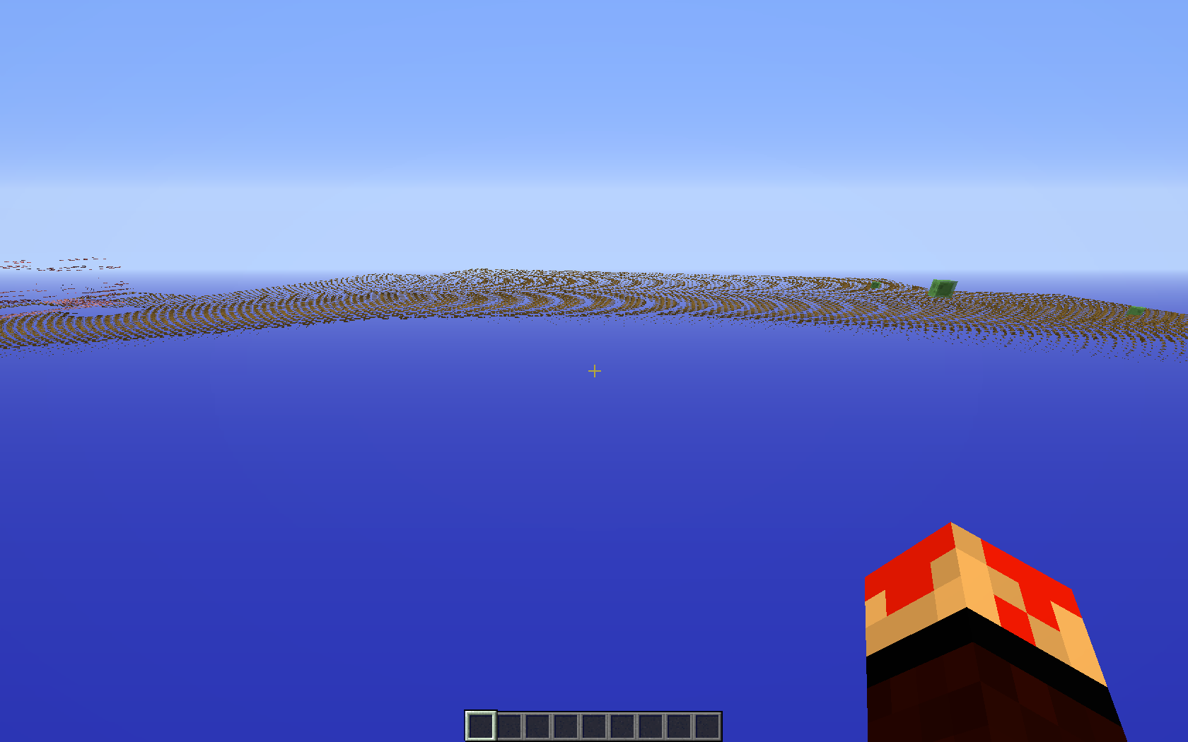 When i throw a block out of my inventory the blocks around me turn blue like the sky, after a lot of blocks I can see the top of the blocks but not the sides, it also does this when i hold a flower or torch,I can see animals moving but not blocks