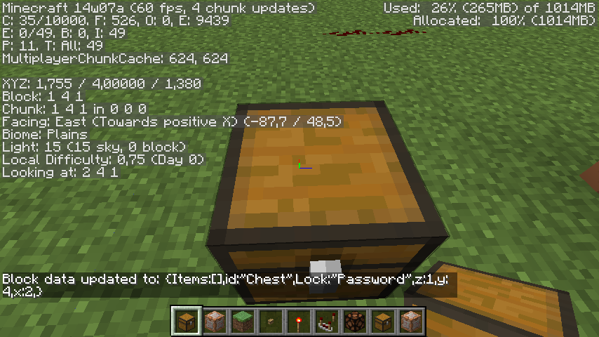 If you try to lock a chest, furnace, etc. using /blockdata, it will not lock, but instead say "This block does not hold blockdata."