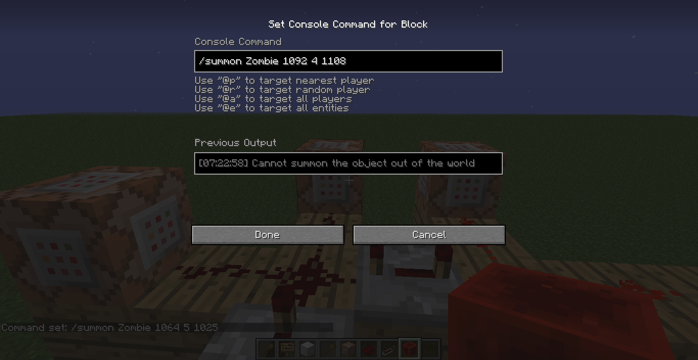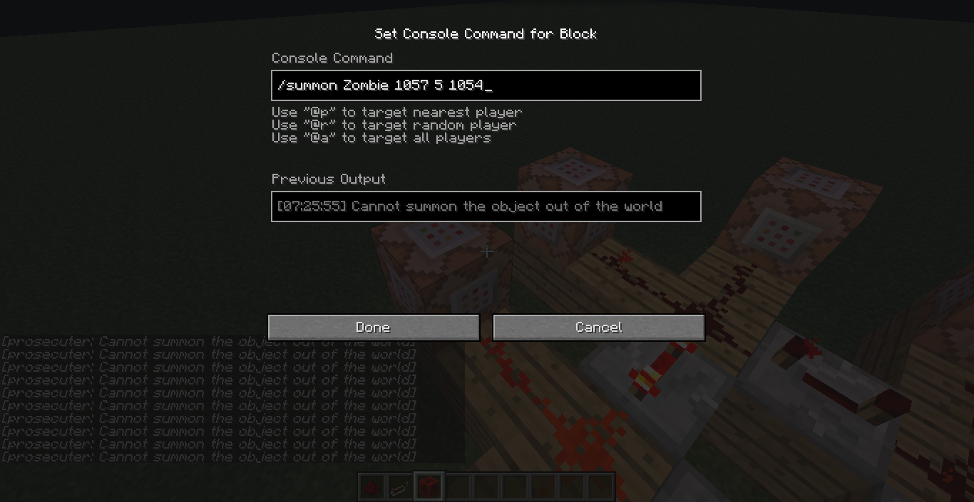 as i am trying to make my zombies map, zombies are not spawning due to "they are out of the world" i checked the coordenates and as you see in the pictures they are below the natural 30,000,000 limit. This was also happening when i was trying to use /setblock and /fill but i did not get screenshots of those.