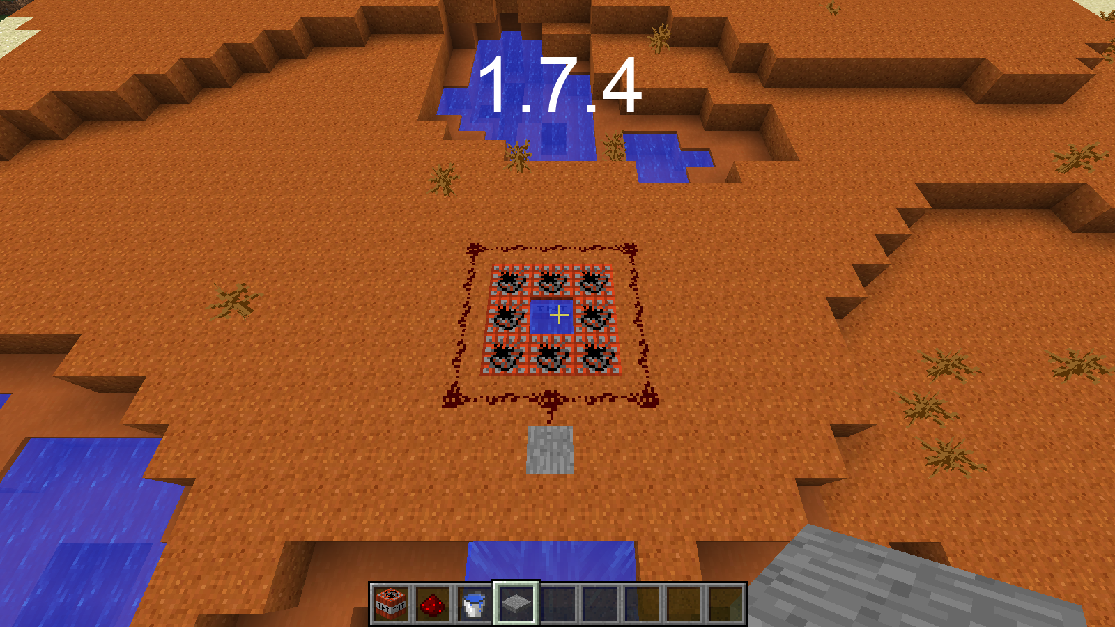 when i was exploding TNT that was submerged in 1 block of water, the TNT destroyed the nearby blocks, as shown by the images on the bottom, this never happened in the current version 1.7.4, i tried it in 1.7.4 and as shown by the pictures on the bottom. nothing exploded.