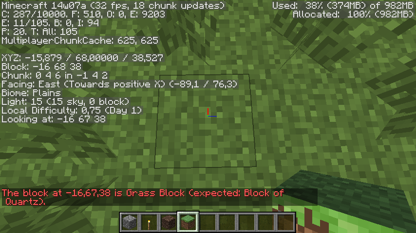 execute @p ~ ~ ~ testforblock ~ ~-1 ~ minecraft:quartz_block