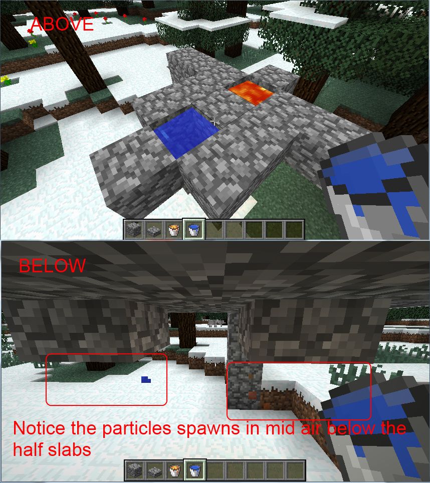4. Observe the particles beneath the half slab spawning in mid air (see picture)