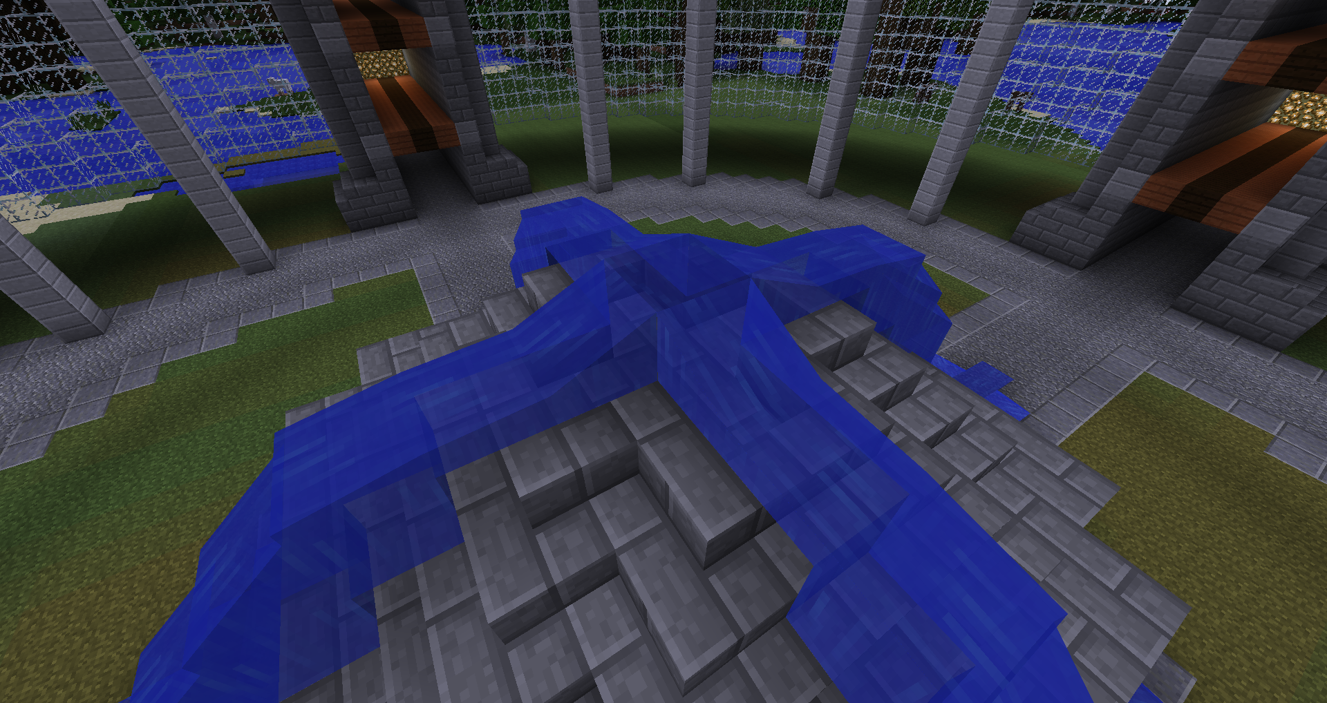 When water is placed on the slabs next to stairs, water ignores half block height difference and flows over.