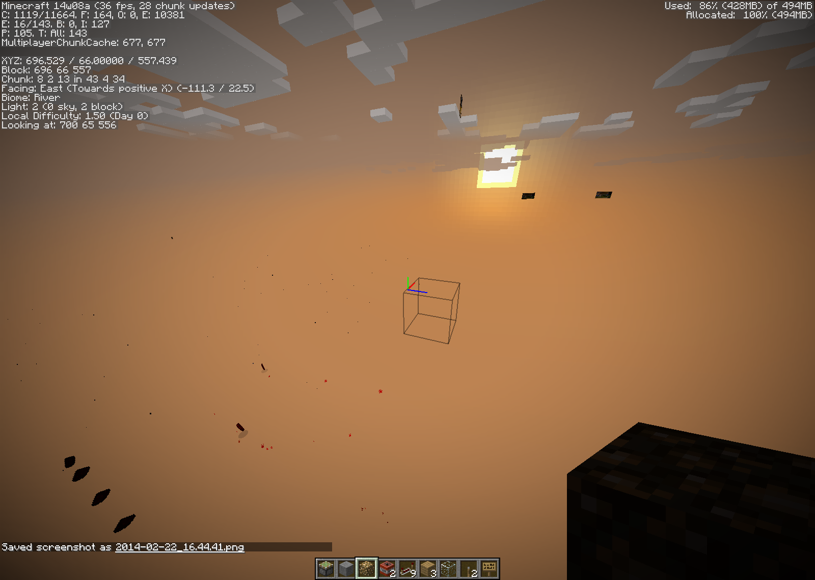 I am having an issue with the latest Minecraft snapshot build "14w08a" and the issue is there none of the blocks load and all I can see is the skybox with a wireframe to mine