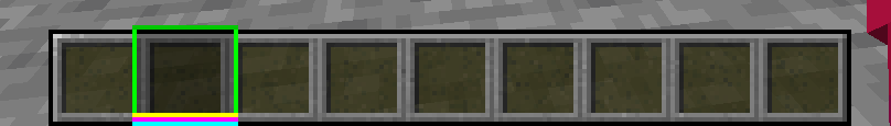 The resource pack replaces the hotbar selector texture with a diagnostic version: the bottom three rows are colored yellow, magenta, and cyan respectively, making any clipping immediately visible. Testing on any version before 23w31a shows only the yellow row partially visible, with magenta and cyan completely cut off, confirming the bug is present. Testing on 23w31a shows all three colored rows fully visible.